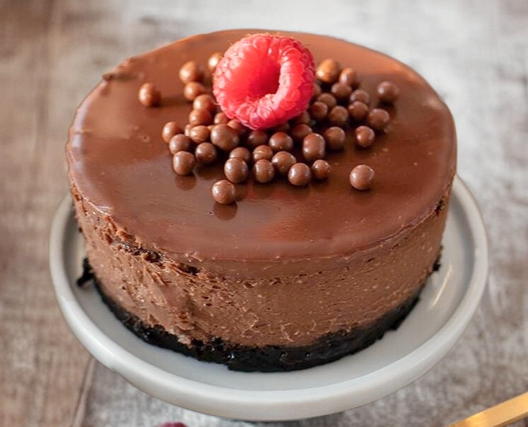 Individual - Mini cheesecake de chocolate oscuro con base de Oreo y perlas crujientes de chocolate belga de leche.
