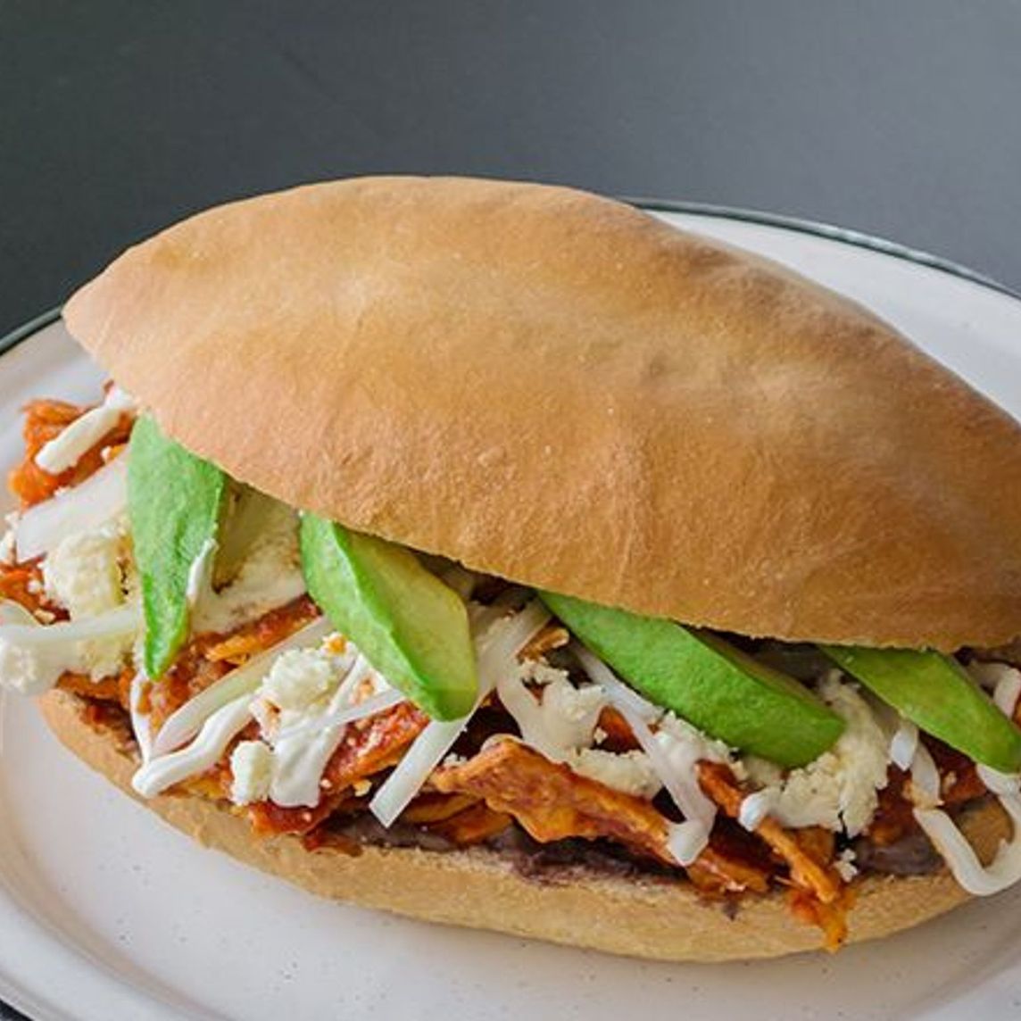 Preparada con salsa a tu elección, crema, queso de rancho, cebolla y acompañados con media telera.