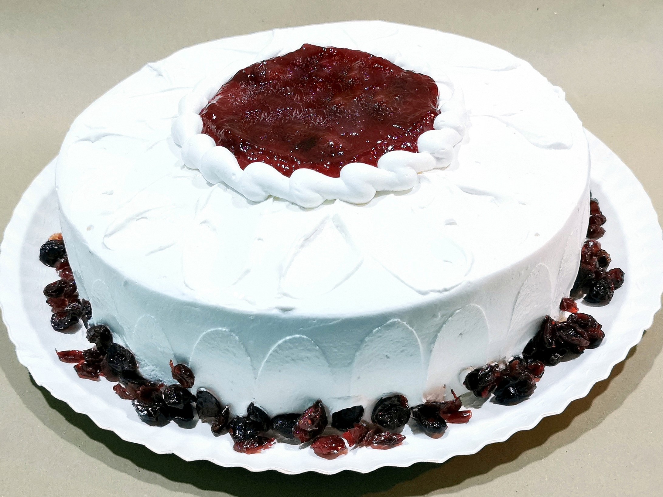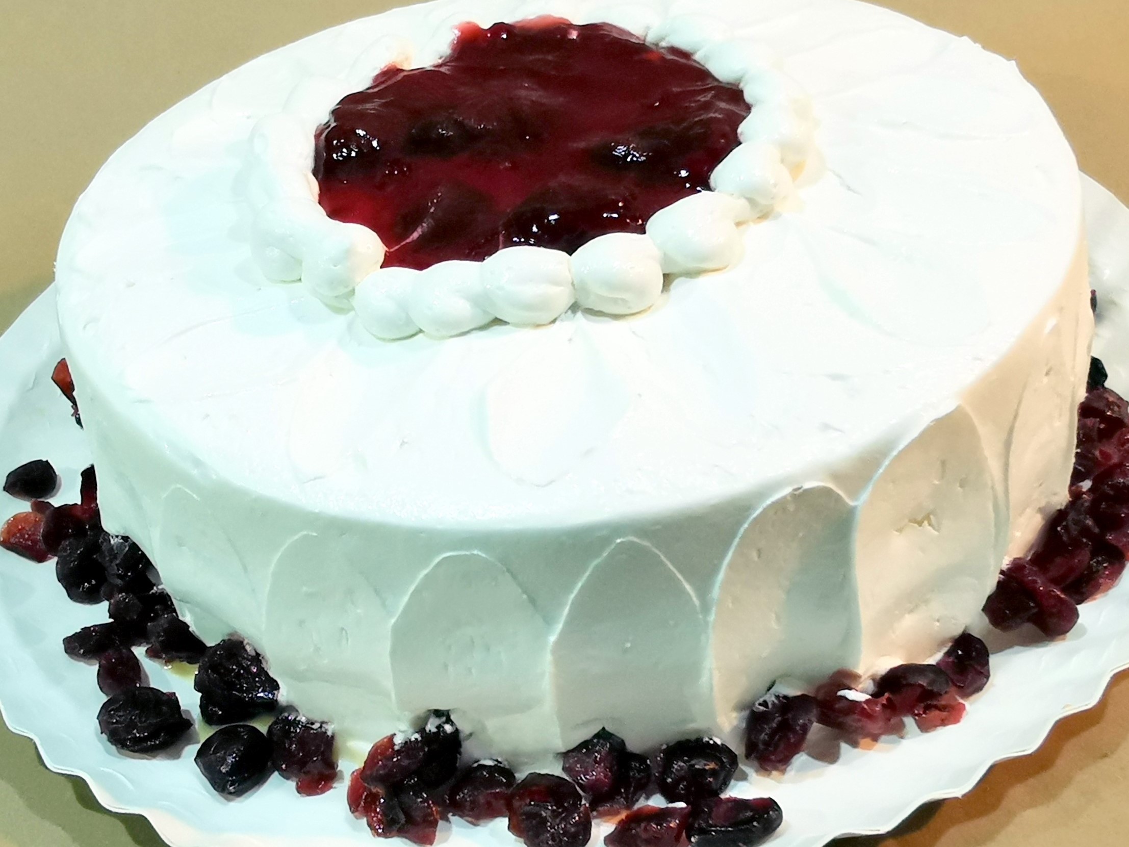 .Delicioso pan de vainilla mojado en 3 leches con exquisito aroma a fresas, relleno de crema de queso y mermelada de fresas, cubierto de deliciosa crema de queso y decorado con trozos de fresa en mermelada y arándanos deshidratados en la base del pastel.