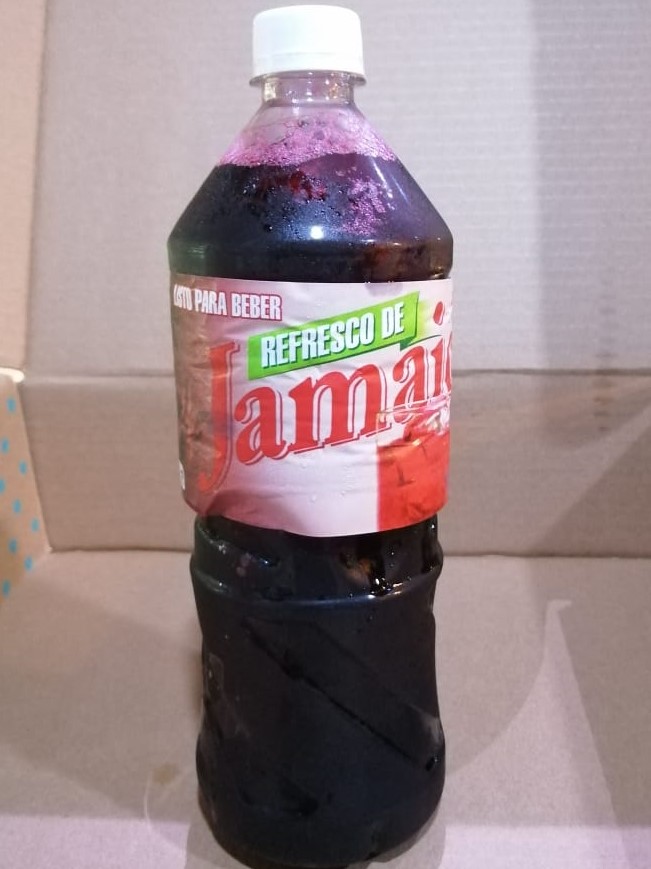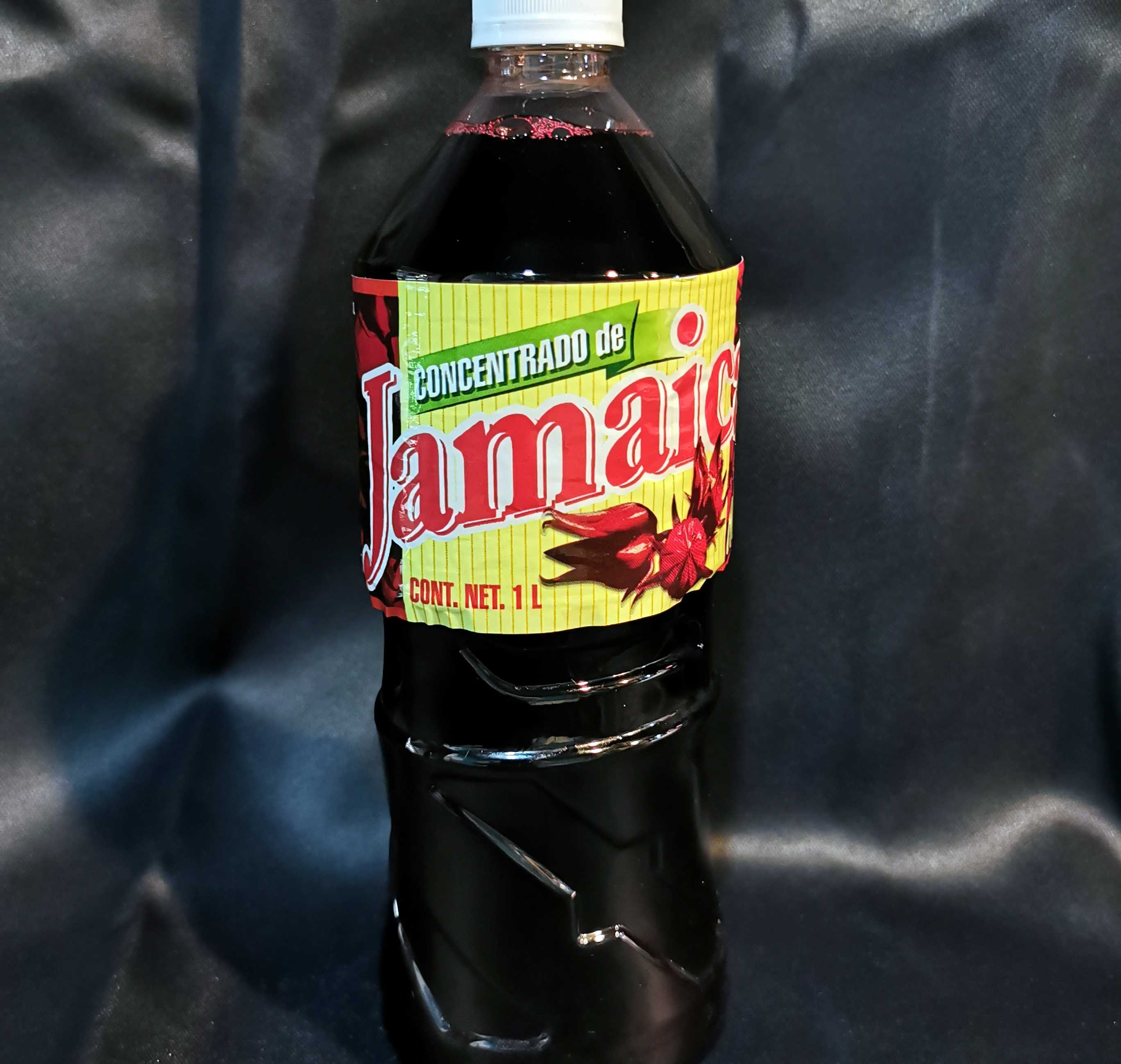 Delicioso concentrado de flor de Jamaica 100% natural, se recomienda agregar cuatro litros de agua a un litro de concentrado de flor de Jamaica y azúcar al gusto.