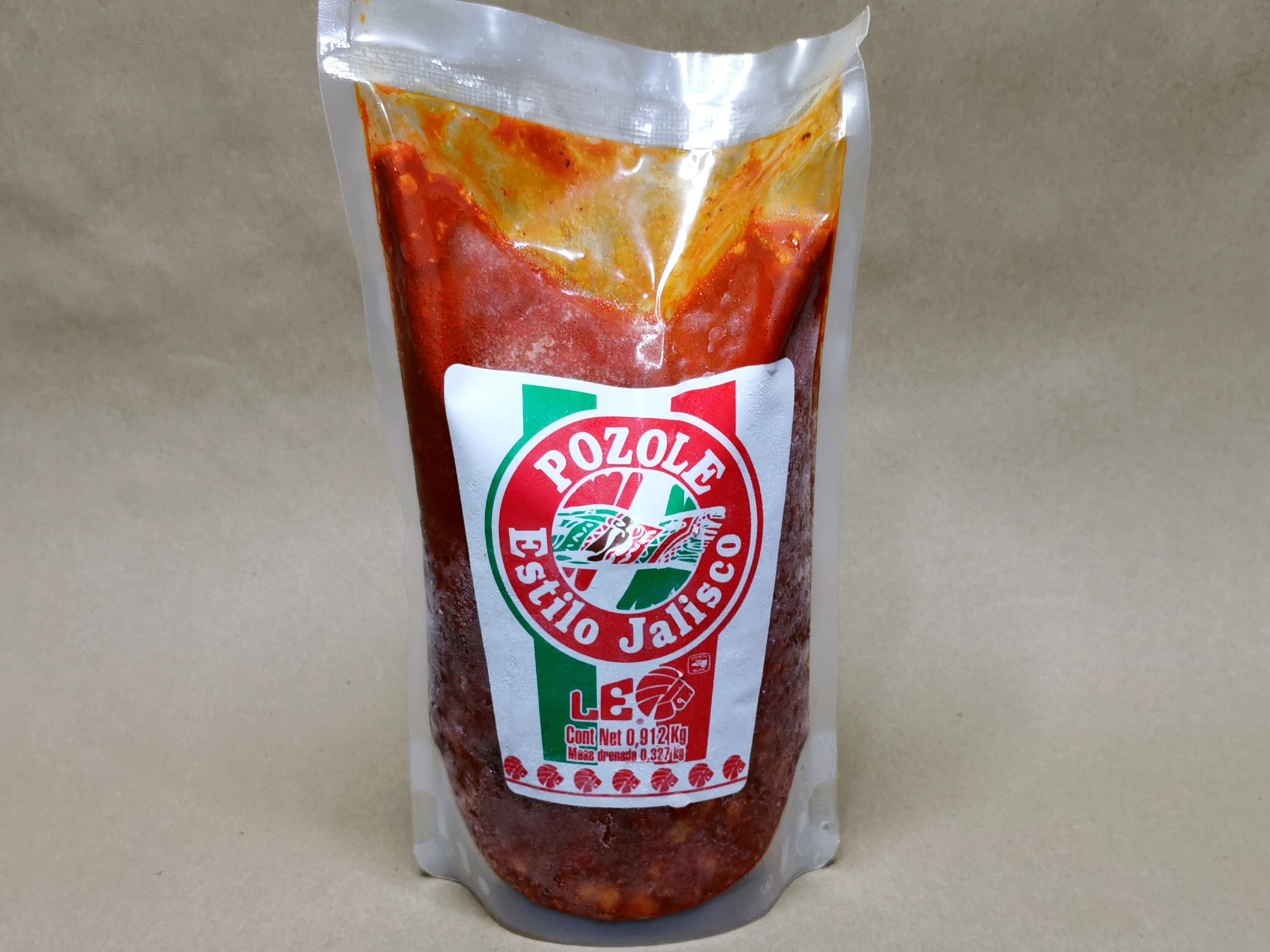 Delicioso caldo con granos de maíz, carne de cerdo, chile ancho, orégano, chile guajillo y guisado con la inigualable receta de leo, listo para disfrutar.