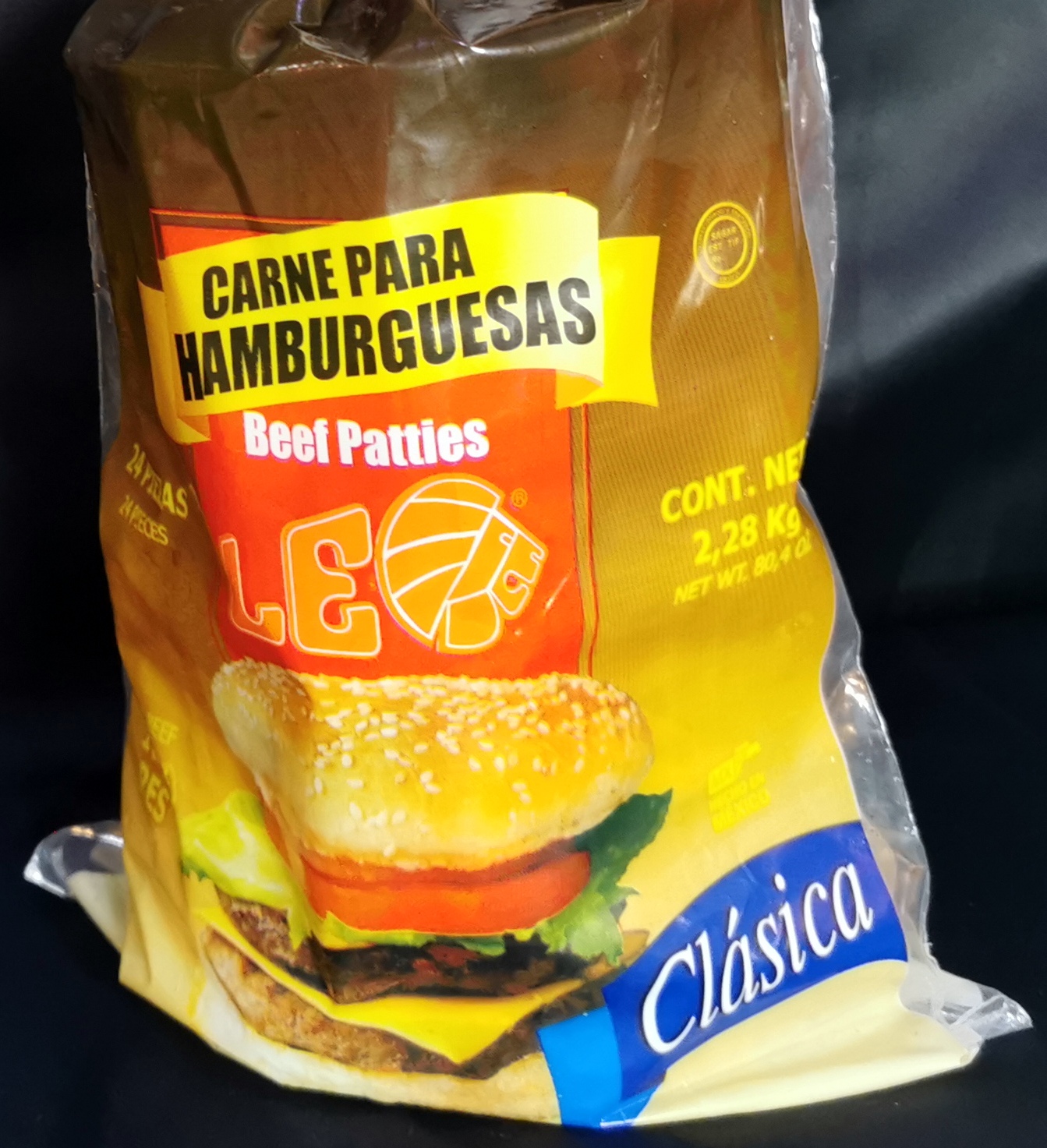 100% Carne de res molida, preparada y sazonada con la receta Leo: CLASICA: 12 cm de diámetro, 0.5 mm de grosor y 95 gr peso por pieza