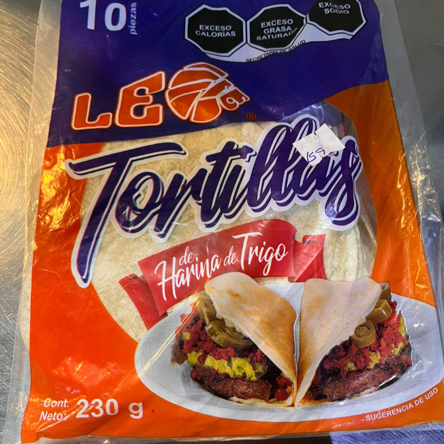 Tortilla de harina, hecha a base de harina de trigo, grasa vegetal y margarina especial, la cual le permite tener una textura y consistencia suave y flexible.
