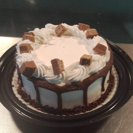 Pan de vainilla mojado en 3 leches, aromatizado con Iicor de café, cubierto y relleno con crema de KaIhua, elaborado a base de (crema de coco, licor de café y vainilla) decorado con crema de chocolate combinado con crema de kaIhua, ganache de chocolate y granillo sabor chocolate.