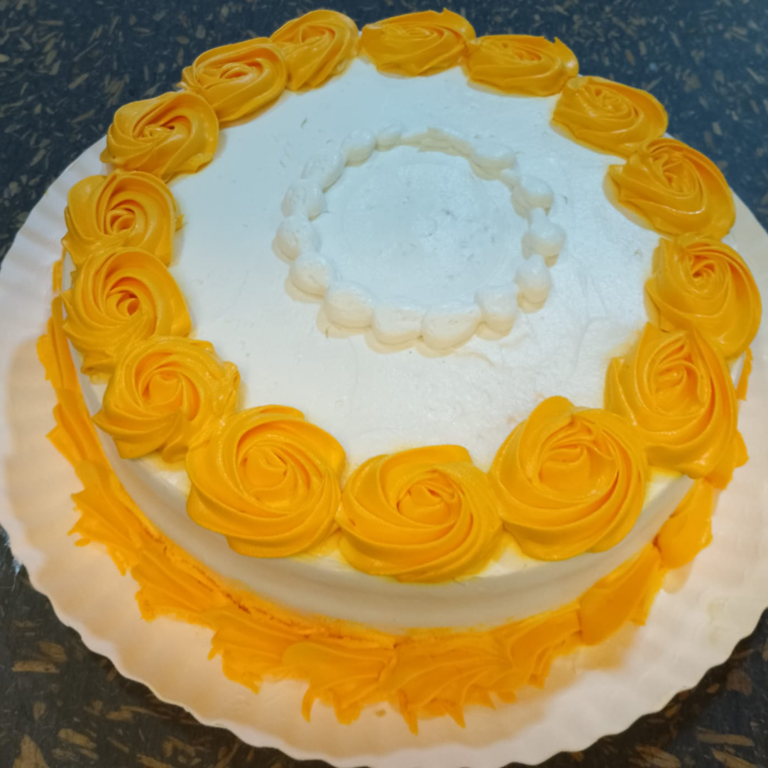 Delicioso y exquisito pan de vainilla mojado en 3 leches, relleno de crema pastelera con toque de ron y vainilla cubierto de riquísima crema y decorado con un cordón en la falda del pastel y dos flores en colores rosa o azul.