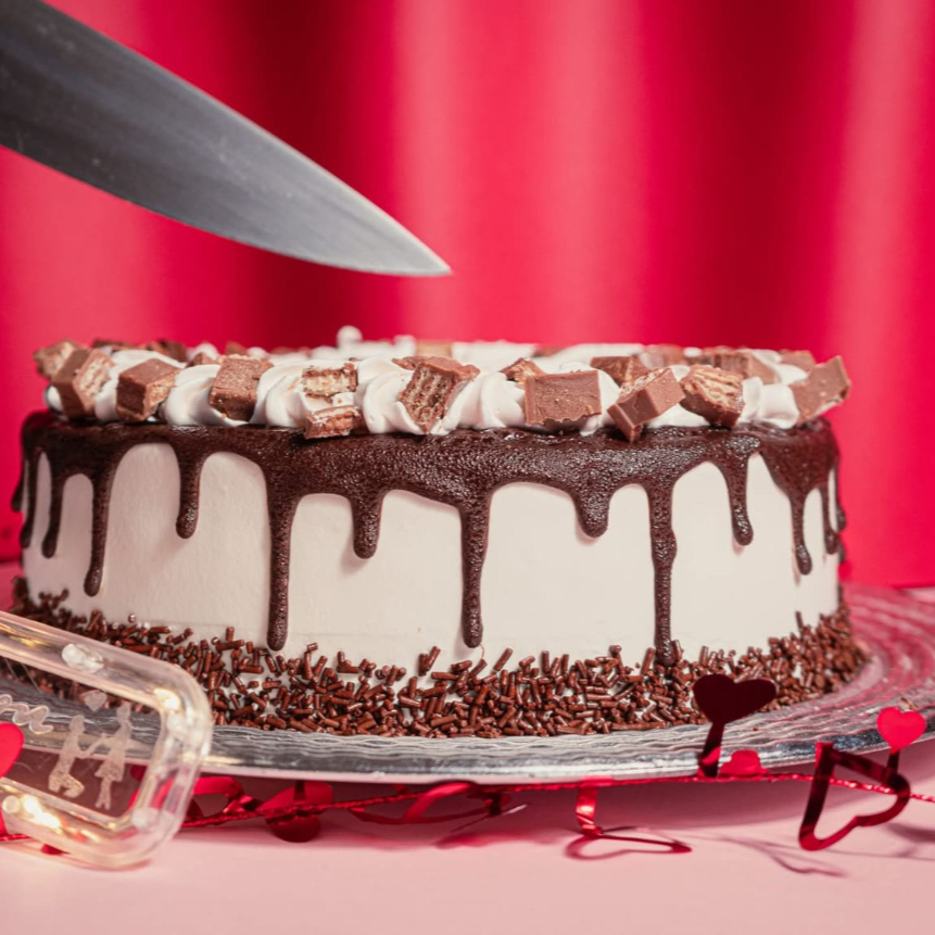 Pan de vainilla mojado en 3 leches, aromatizado con Iicor de café, cubierto y relleno con crema de KaIhua, elaborado a base de (crema de coco, licor de café y vainilla) decorado con crema de chocolate combinado con crema de kaIhua, ganache de chocolate y granillo sabor chocolate.
