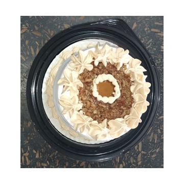 Delicioso y exquisito pan suave con ralladura de zanahoria, piña y nuez picada, relleno de una deliciosa combinación de crema de queso y un toque de licor de café, cubierto con betún de crema de queso y decorado con nuez molida y zanahoria deshidratada.