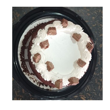 Una espectacular combinado de color y sabor con pan vainilla y chocolate, mojado en 3 leches, relleno de crema de la casa con exquisito tropiezos de chocolate simiamargo, un segundo relleno de crema fudge y bañado con cnantilly sabor vainilla; decorado en la base con granillo de chocolate , escurrido con chocolate semi amargo en la falda y delicioso trozos de oblea de chocolate KIKAT.