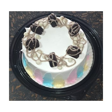 Delicioso pan de vainilla mojado en 3 leches, con un espectacular relleno cremoso con chocolate blanco, espolvoreado de galleta oreo y tropiezos de CHISPAS HERSHEY´S cookies anda cream, bañado con una exquisita crema chantilly sabor vainilla, decorado con divertidas galletas oreo mini, y CHISPAS HERSHEY´S con un exquisito ganache de chocolate blanco con galleta oreo en zigzag