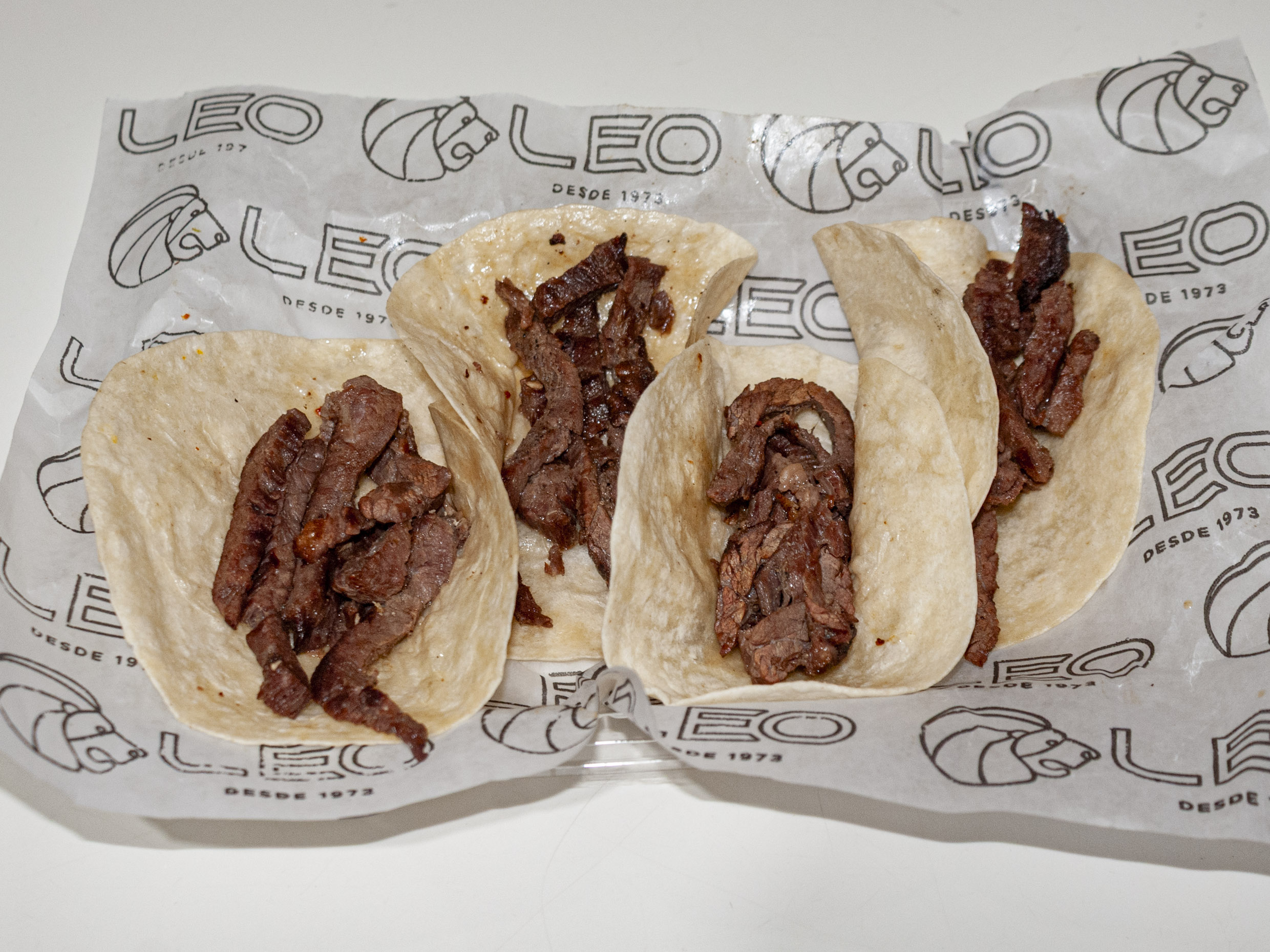 (tacos de bistec picado res,1/2 de frij,ref.med.)