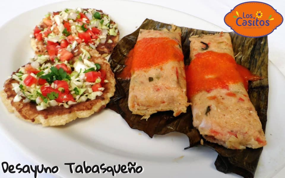 2 Tamalitos de Chipilin, 2 Panuchos acompañados de frijoles refritos, salsa de tomate y queso.