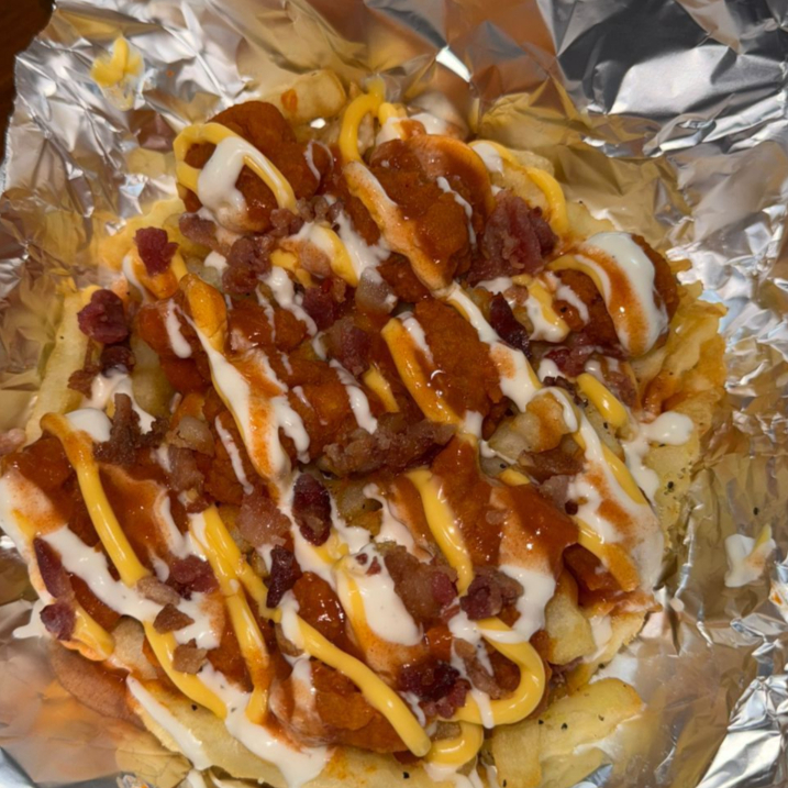 250 gr de papas a la francesa + 150 gr de boneless con salsa, queso, ranch y tocino