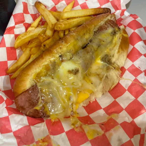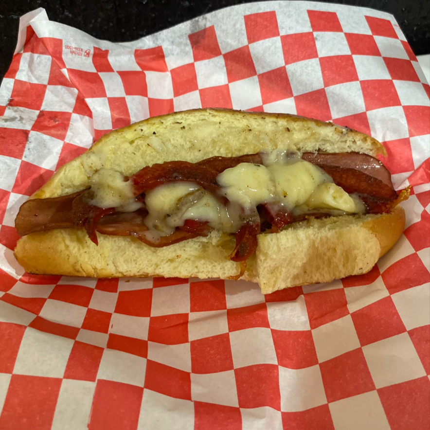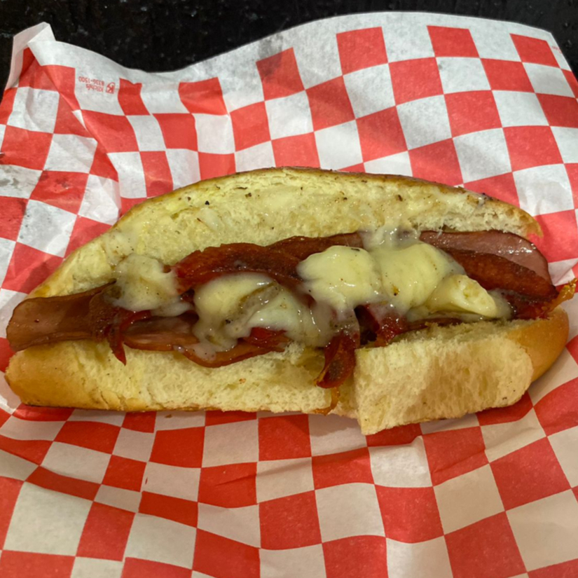 salchicha de pavo, tocino, tres quesos: oaxaca, americano y philadelphia