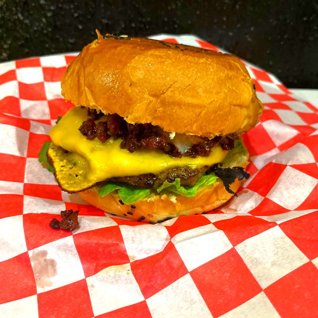 pan brioche con carne de sirloin, lechuga, tomate, queso americano, pepperoni y queso parmesano