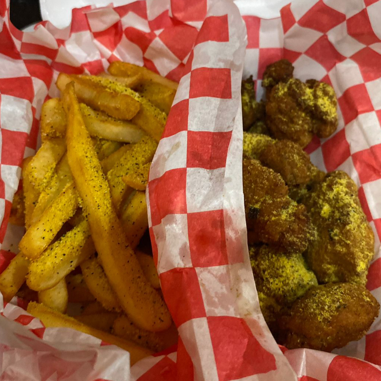 20 piezas de boneless con salsa a su elección acompañados de papas