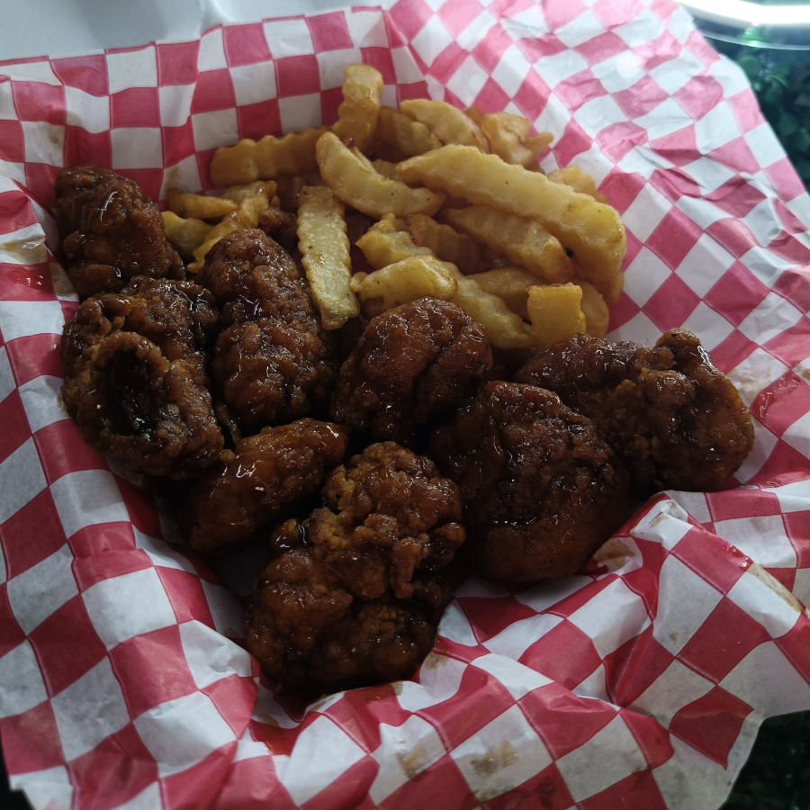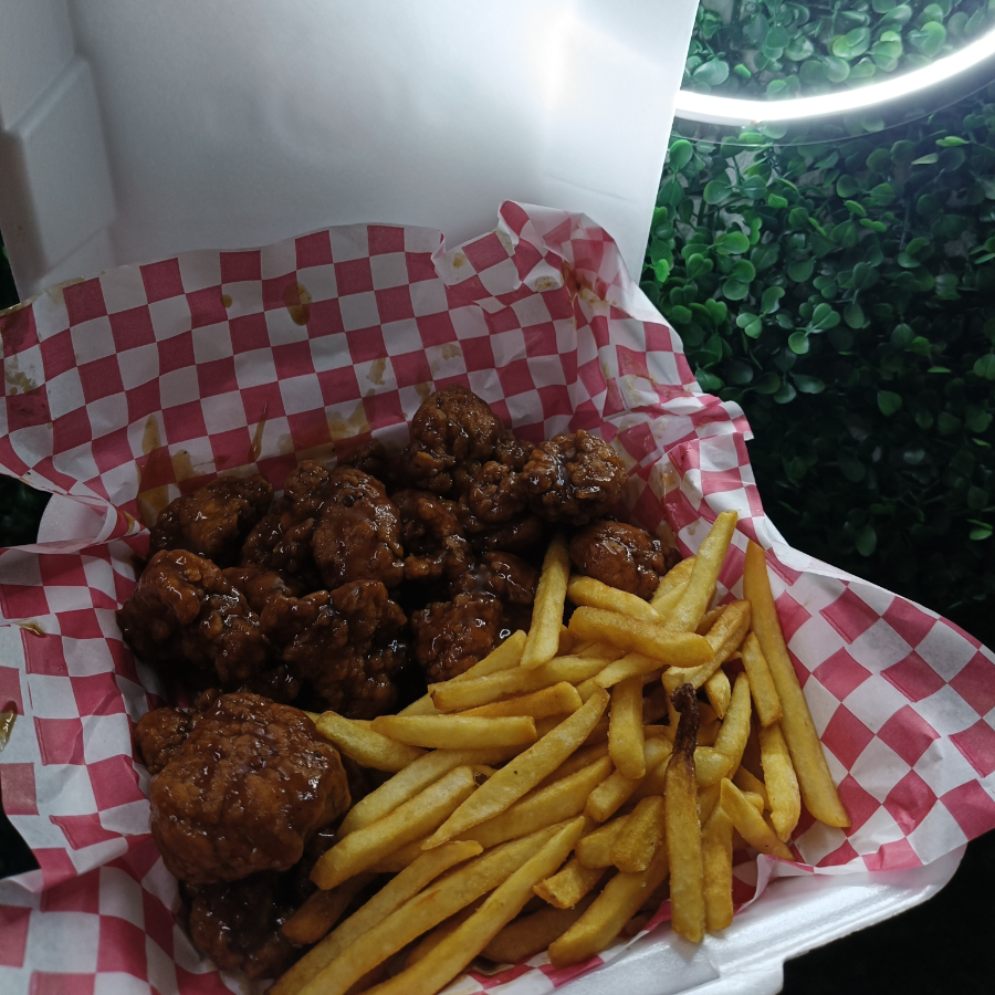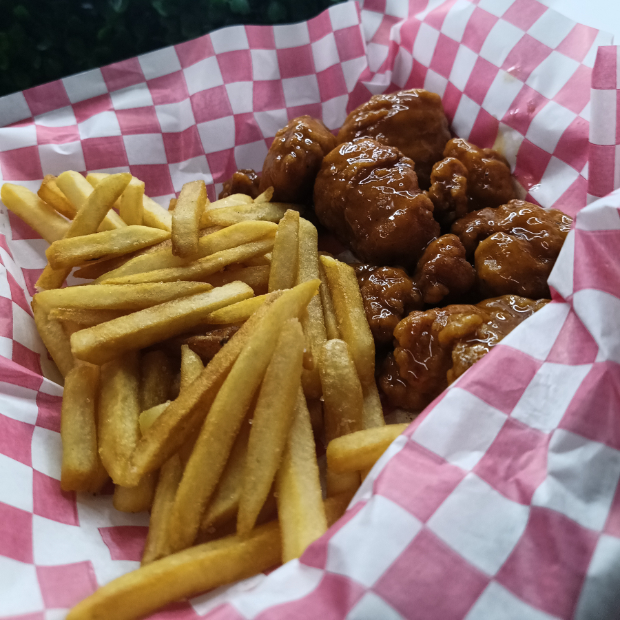 8 de nuestros mejores Boneless en salsa BBQ + papas chicas