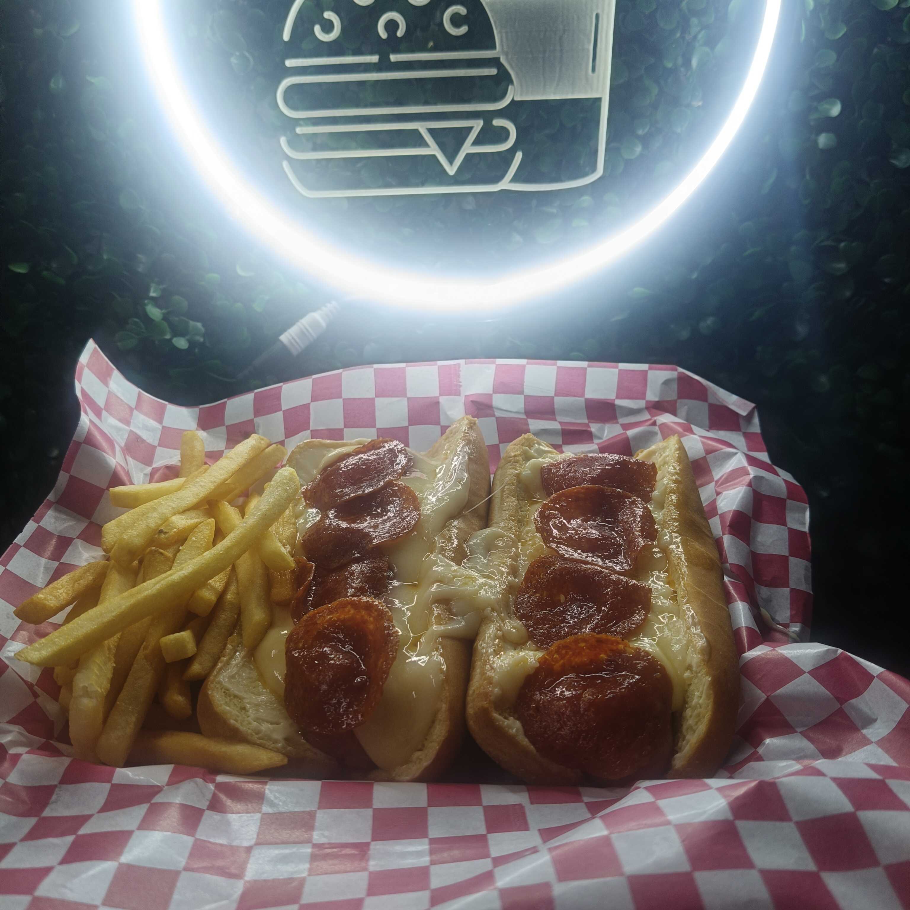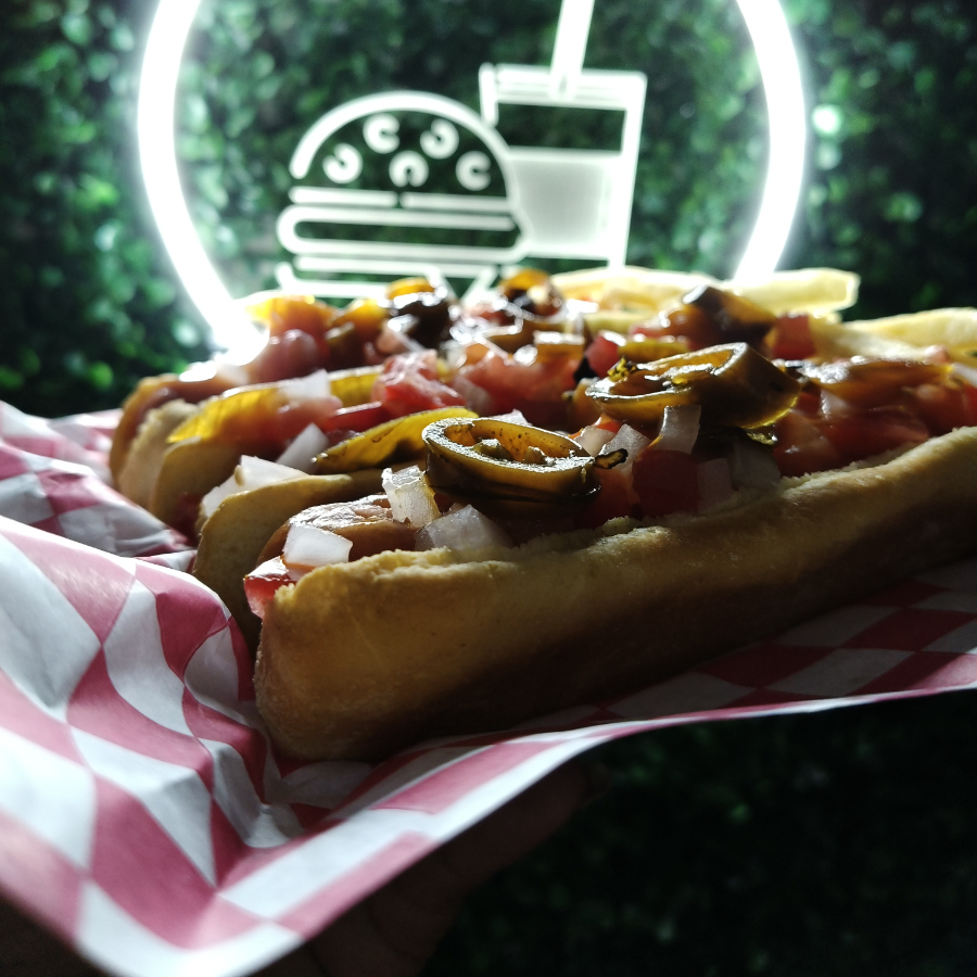 2 pz de nuestros dogos argentinos (Pan, Mayonesa, Salchicha de pavo, Cebolla Asada, Morrón Asado, Chorizo argentino y Queso mozzarella)