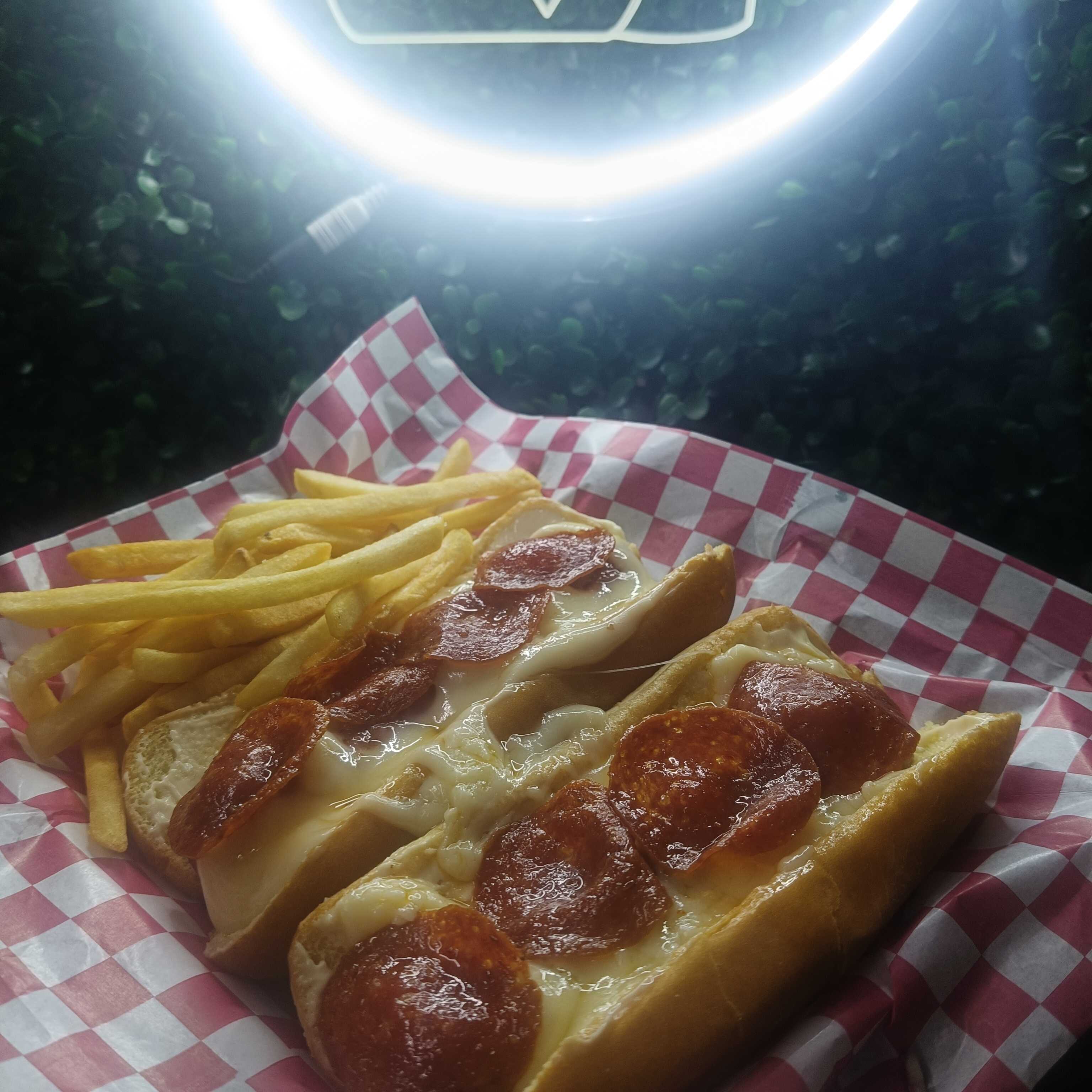 Dogo italiano s/p Ingredientes: Pan Mayonesa Salchicha de pavo Tómate Cebolla Asada Queso mozzarella Pepperoni