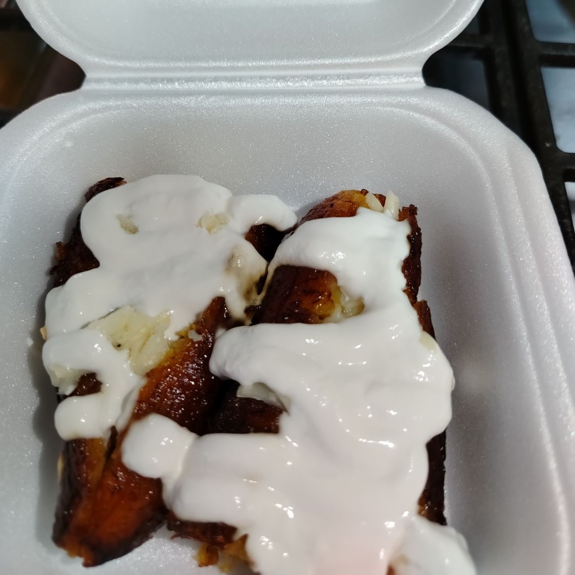 Platanito frito con queso manchego y crema. 1 psa