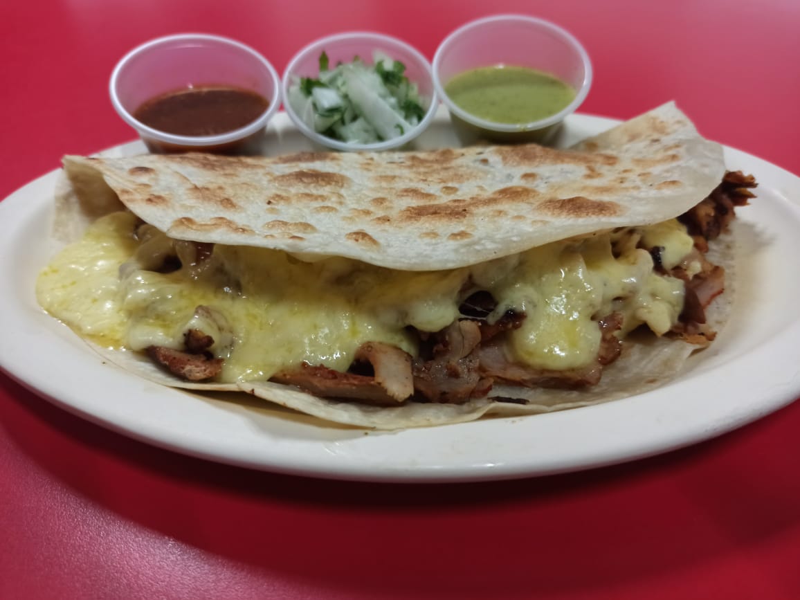 1 GRINGA DE PASTOR, CEBOLLA Y CILANTRO, SALSAS