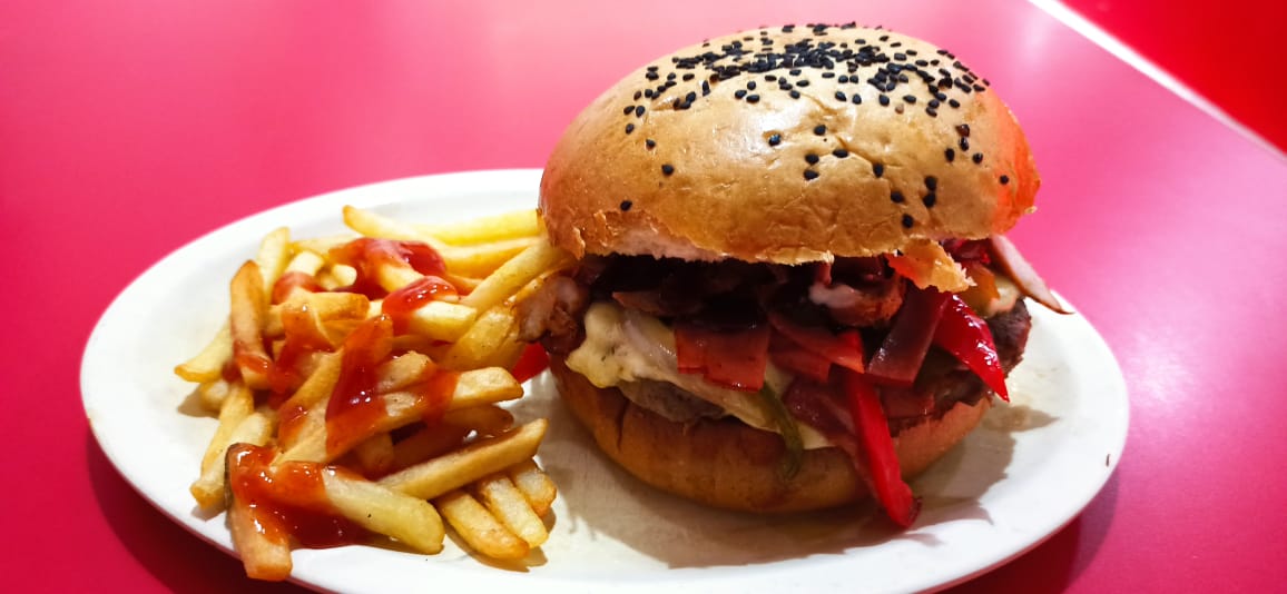HAMBURGUESA BBQ PICANTE + JAMAICA