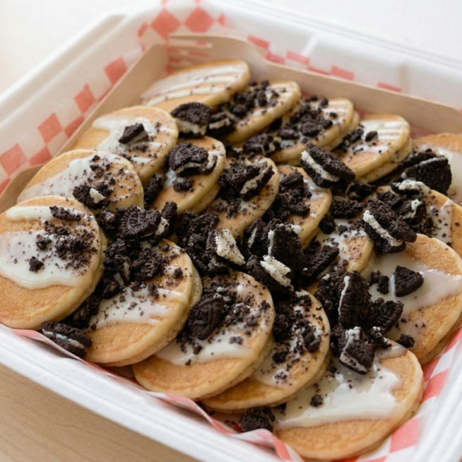 Para los que no se conforman con poco! 25 piezas de nuestros esponjosos mini hot cakes artesanales, personaliza con jarabes favoritos y topping preferido de eleccion