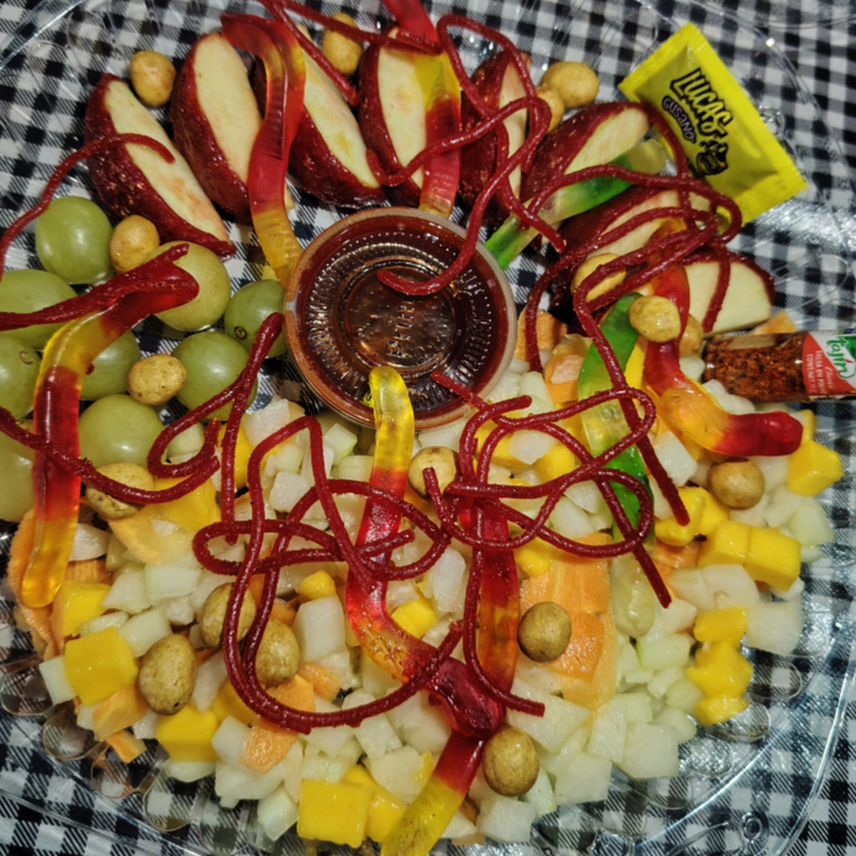 Incluye Tajín, Salsa de la casa y 9 toppings a elegir