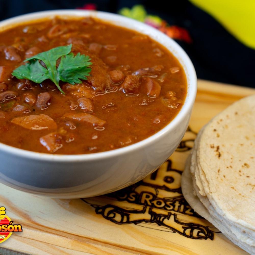 Ricos frijoles charros; ingredientes principales: jamon, tocino, salchicha, longaniza, chile morita). Aprox 500ml