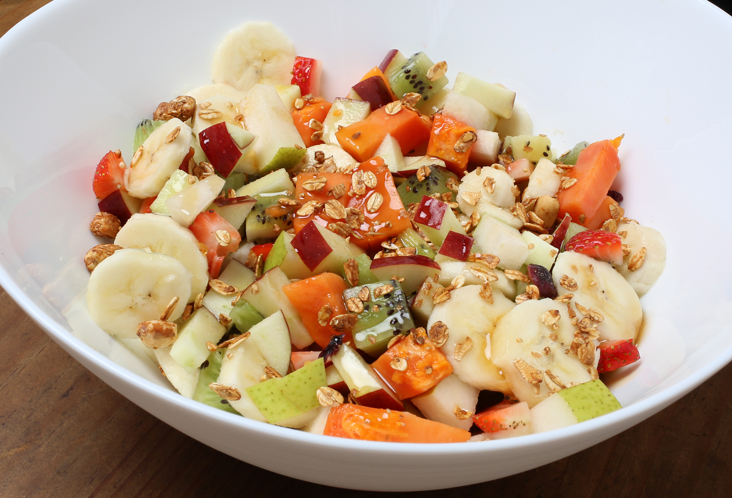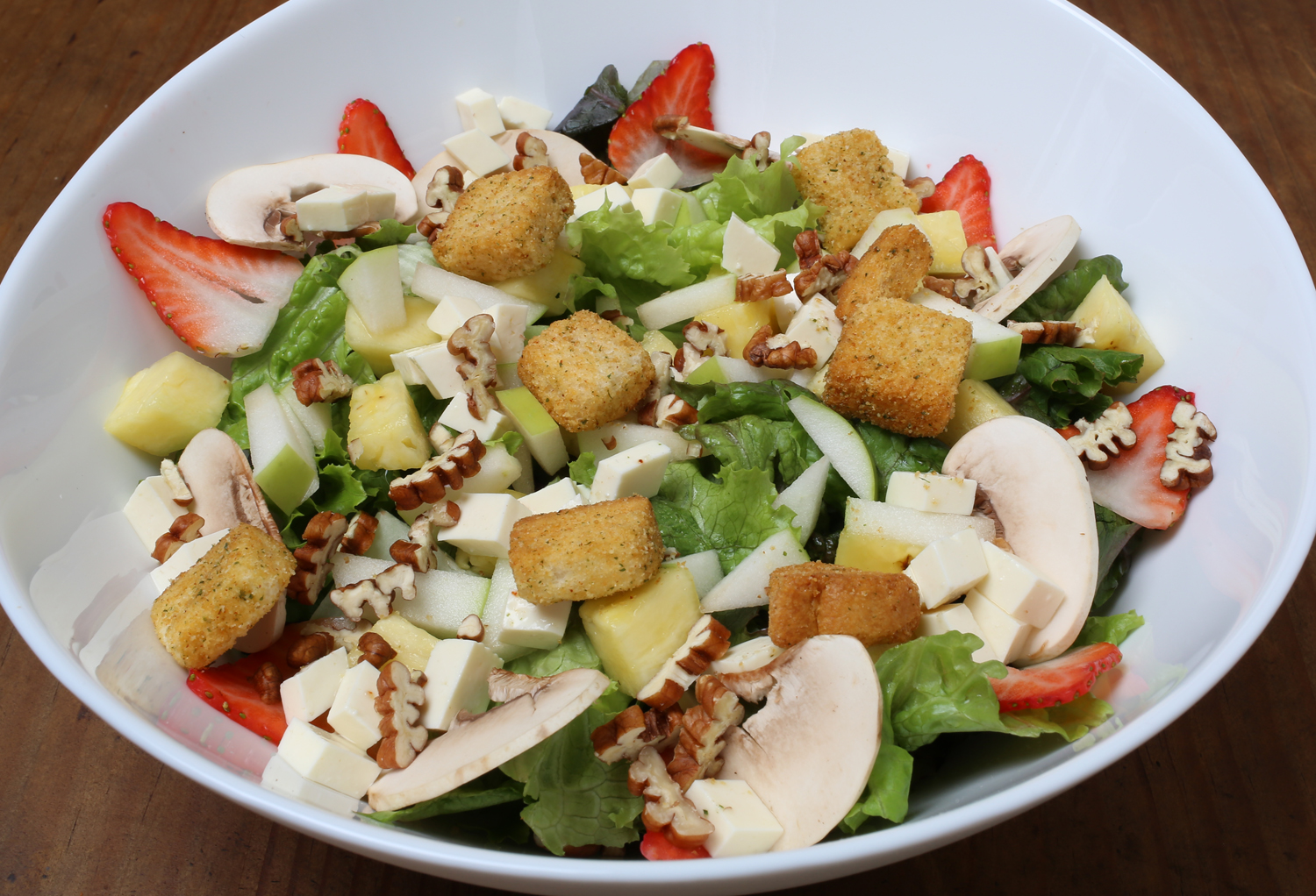 Rica Mezcla De Pinña Con Manzana, Fresa, Champiñon, Nuez, Queso Panela, Acompañada De Aderezo De Mostaza Miel (Mango En Temporada)