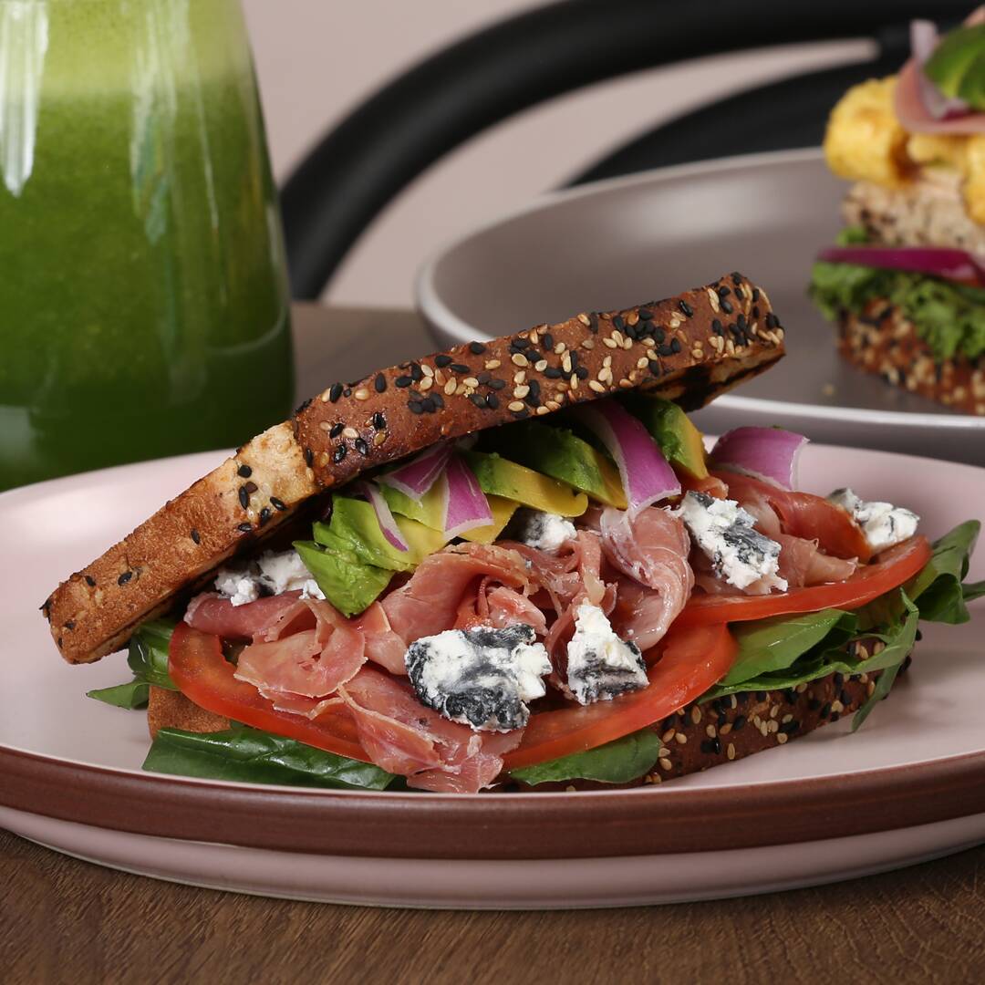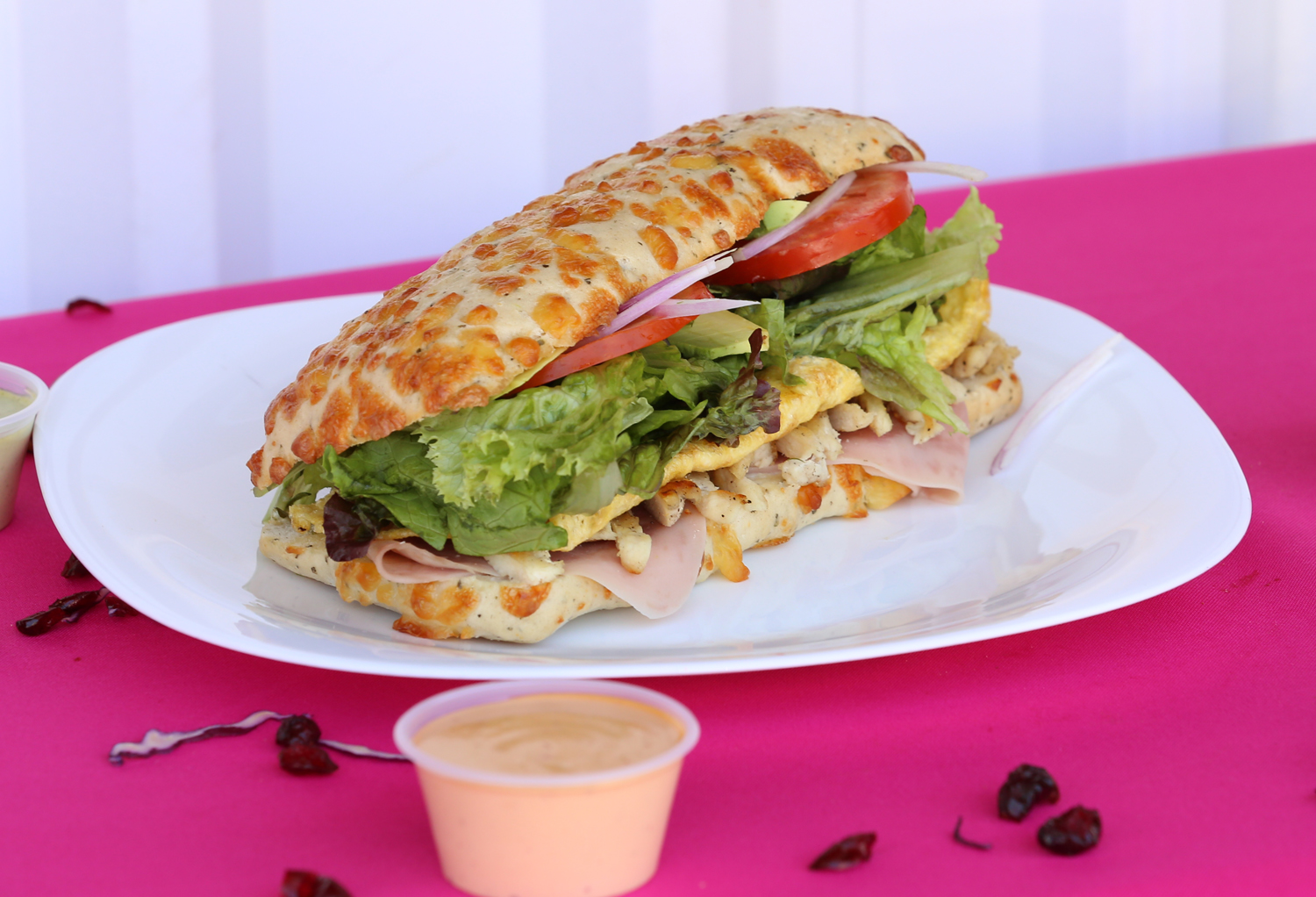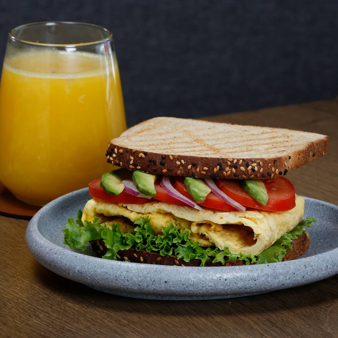 Sándwich. Huevo, Pollo, Jamón De Pavo, Lechuga, Aguacate, Cebolla Morada, Aderezo De Cilantro, Chipotle Cremoso O De Tamarindo