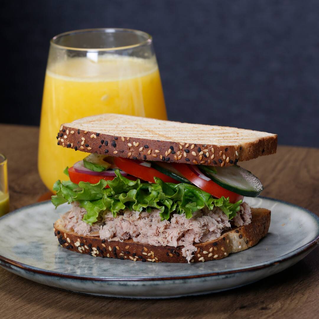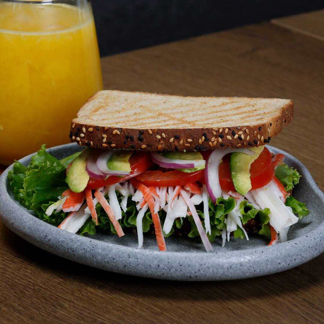 Sándwich. Lechuga, aguacate, tomate, cebolla morada y aderezo de chipotle cremoso o tamarindo
