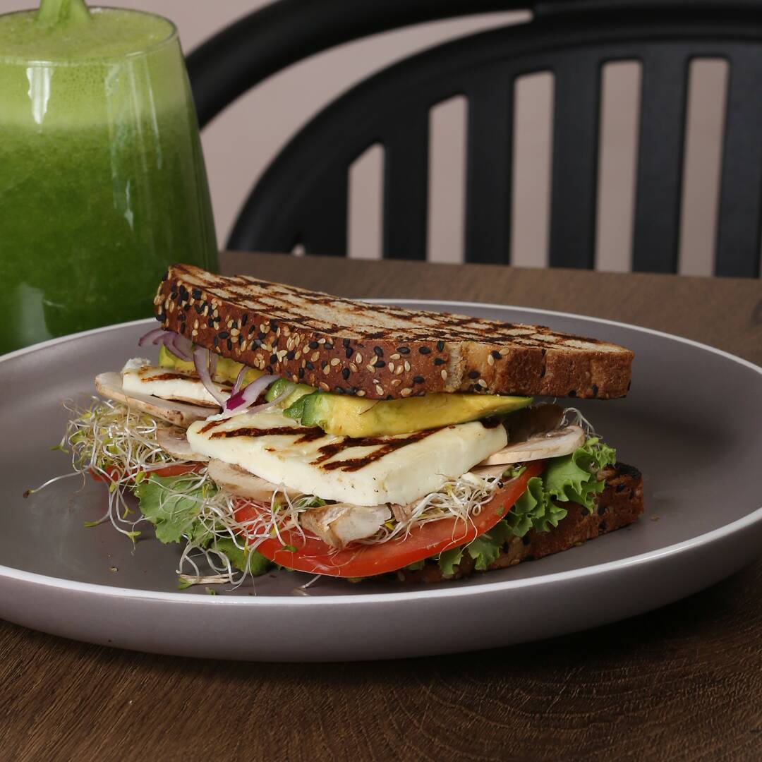 Sándwich. Aguacate, Tomate, Germen, Champiñon, Queso Panela, Aderezo De Ajo Parmesano Y Chipotle Tamarindo
