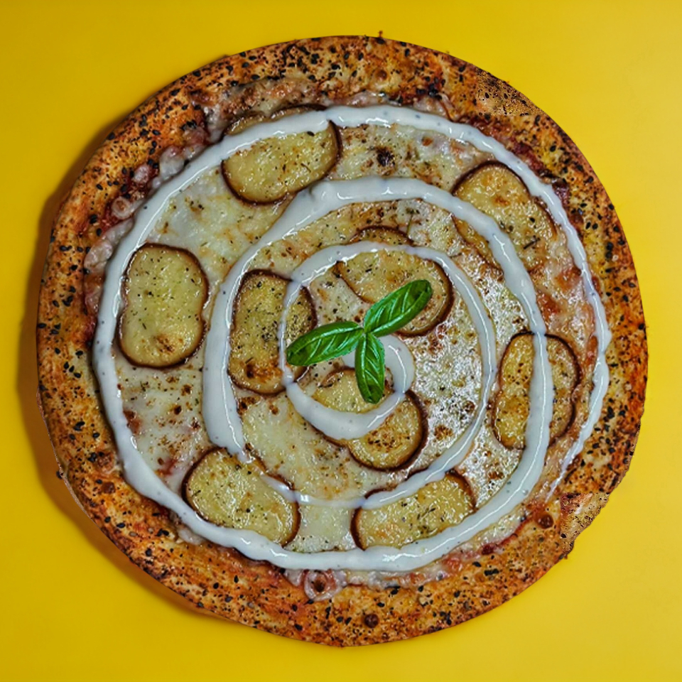 Salsa de tomate, queso mozzarella, queso parmesano, provolone de búfala y aderezo blue cheese. Todo hecho con masa madre y artesanalmente.