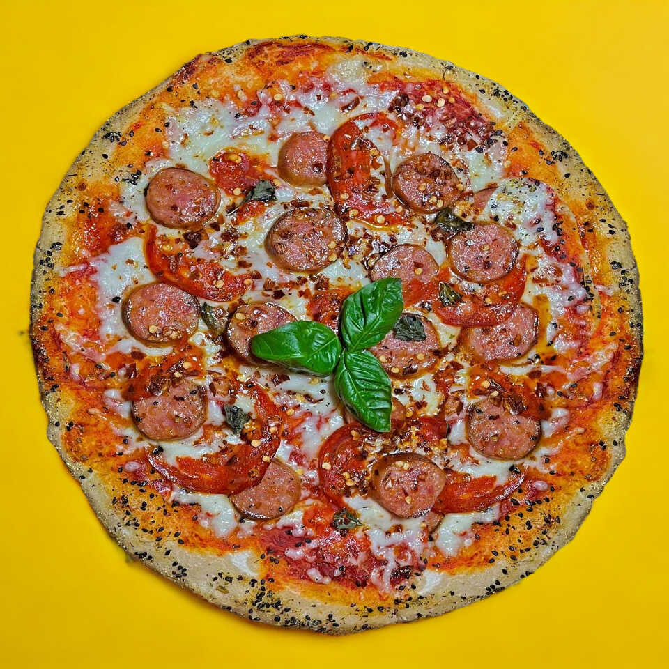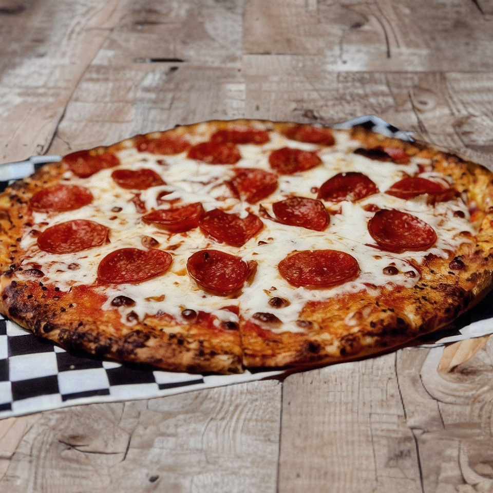 Salsa de tomate, queso mozzarella, pepperoni y parmesano. Todo hecho con masa madre y artesanalmente.