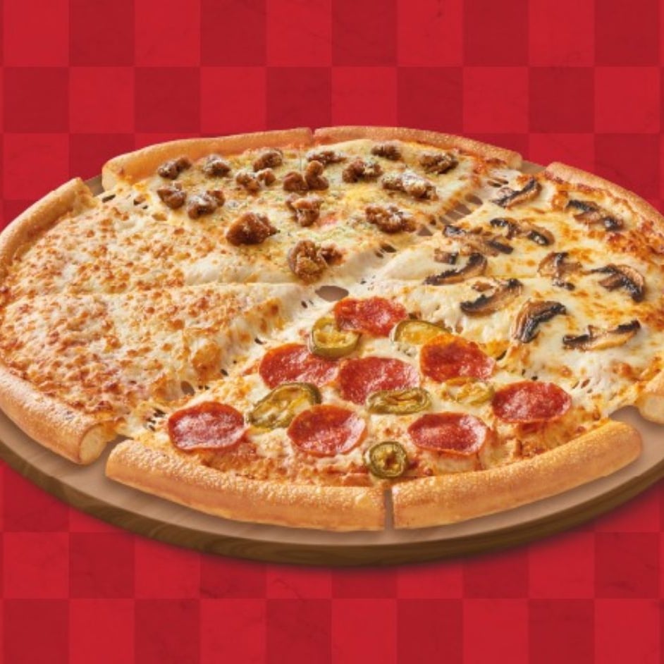 Nuestros 4 sabores más buscados en una sola pizza tamaño GRANDE (Pepperoni y jalapeño, champiñones, hawaiana y queso.) ¡PRECIO POR TIEMPO LIMITADO!
