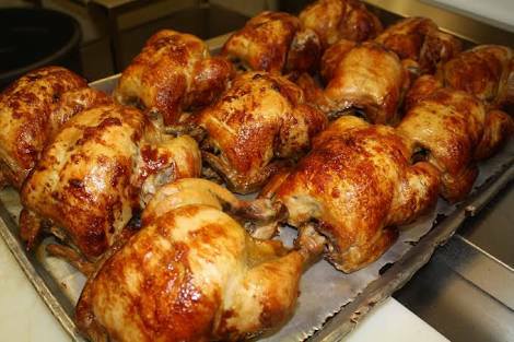 Pollo asado al carbón, bañado en salsa BBQ, incluye salsa de la casa,cebolla y tortilla