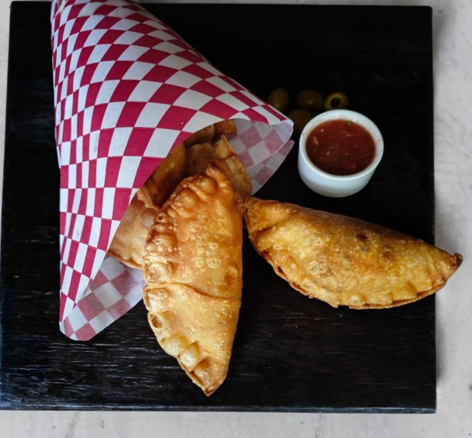 3 empanadas Argentinas, sabores a elegir entre: carne tradicional,jamón con queso, pepperoni con queso, al pastor con queso. Acompañadas de salsa picante.