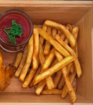 3 Tortitas de papa acompañadas con salsa cátsup.