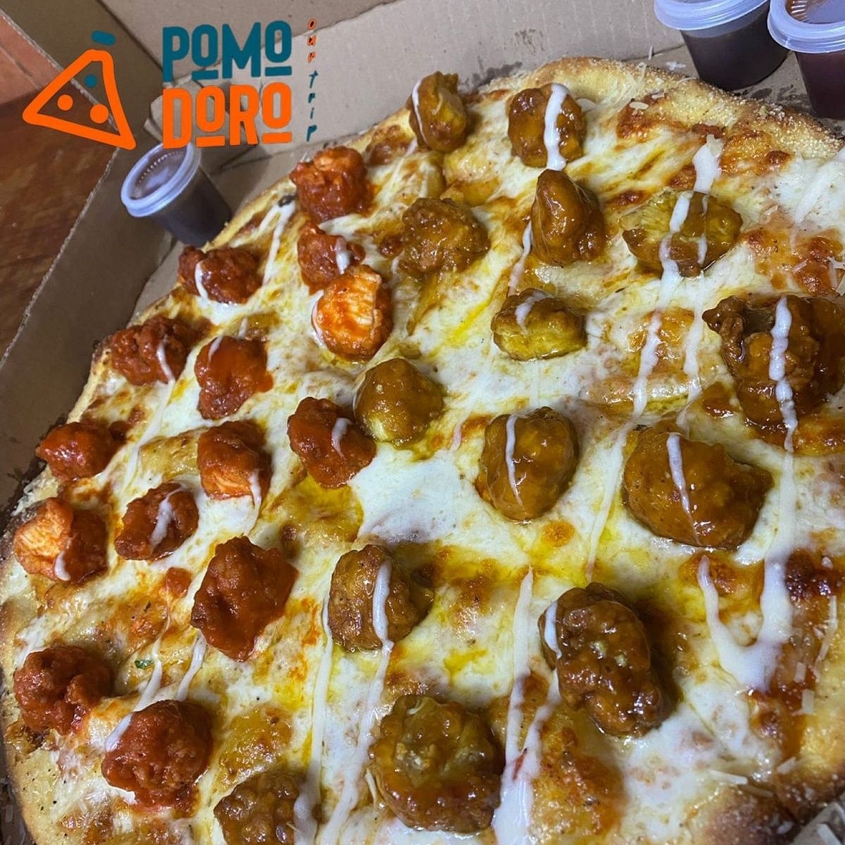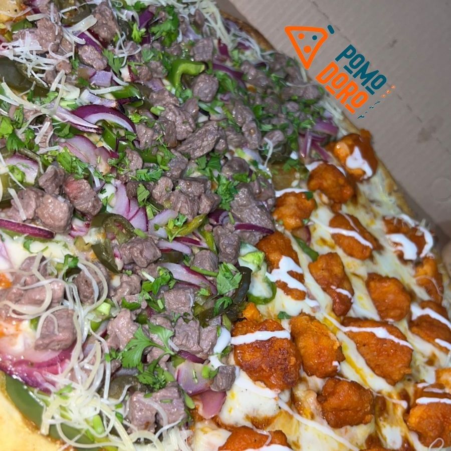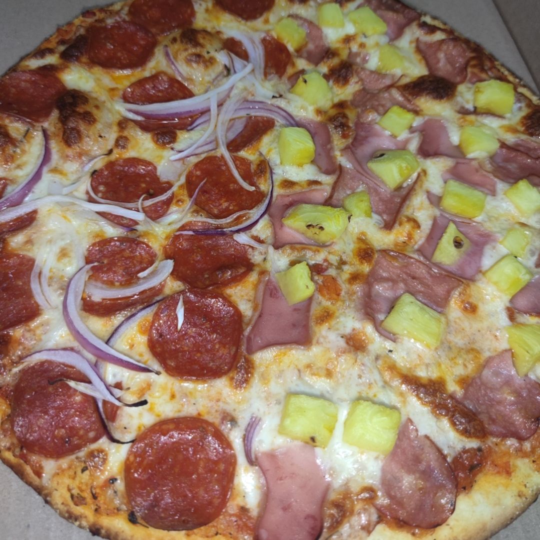 Pomodoro🍅Mozzarella, pepperoni, cebolla, jamon, tocino 🥓 piña natural 🍍