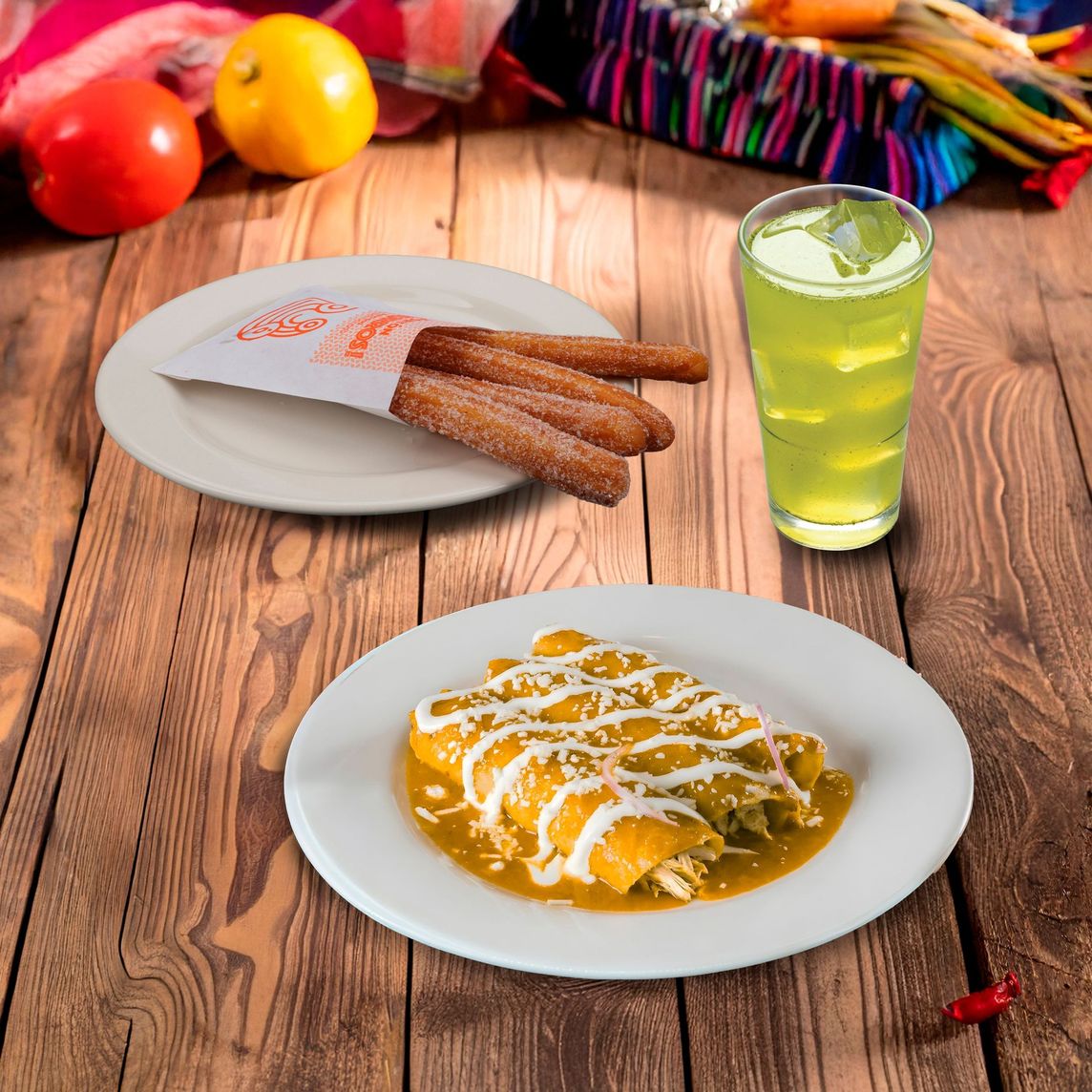 Incluye enchiladas rojas o verdes + churros + bebida