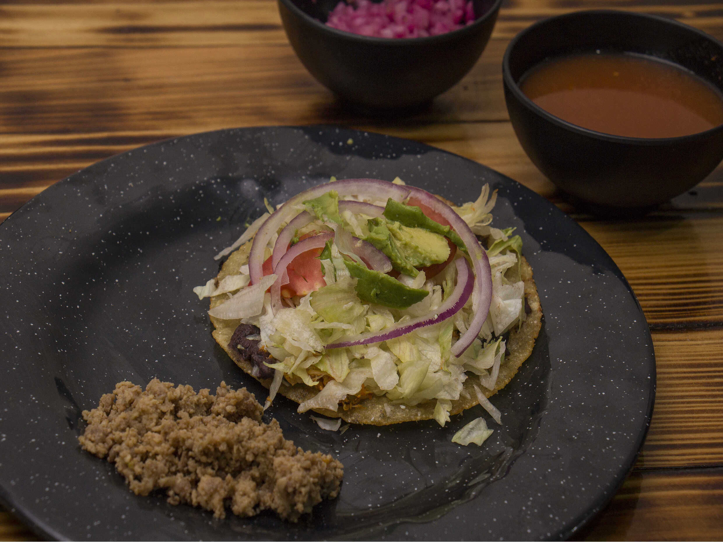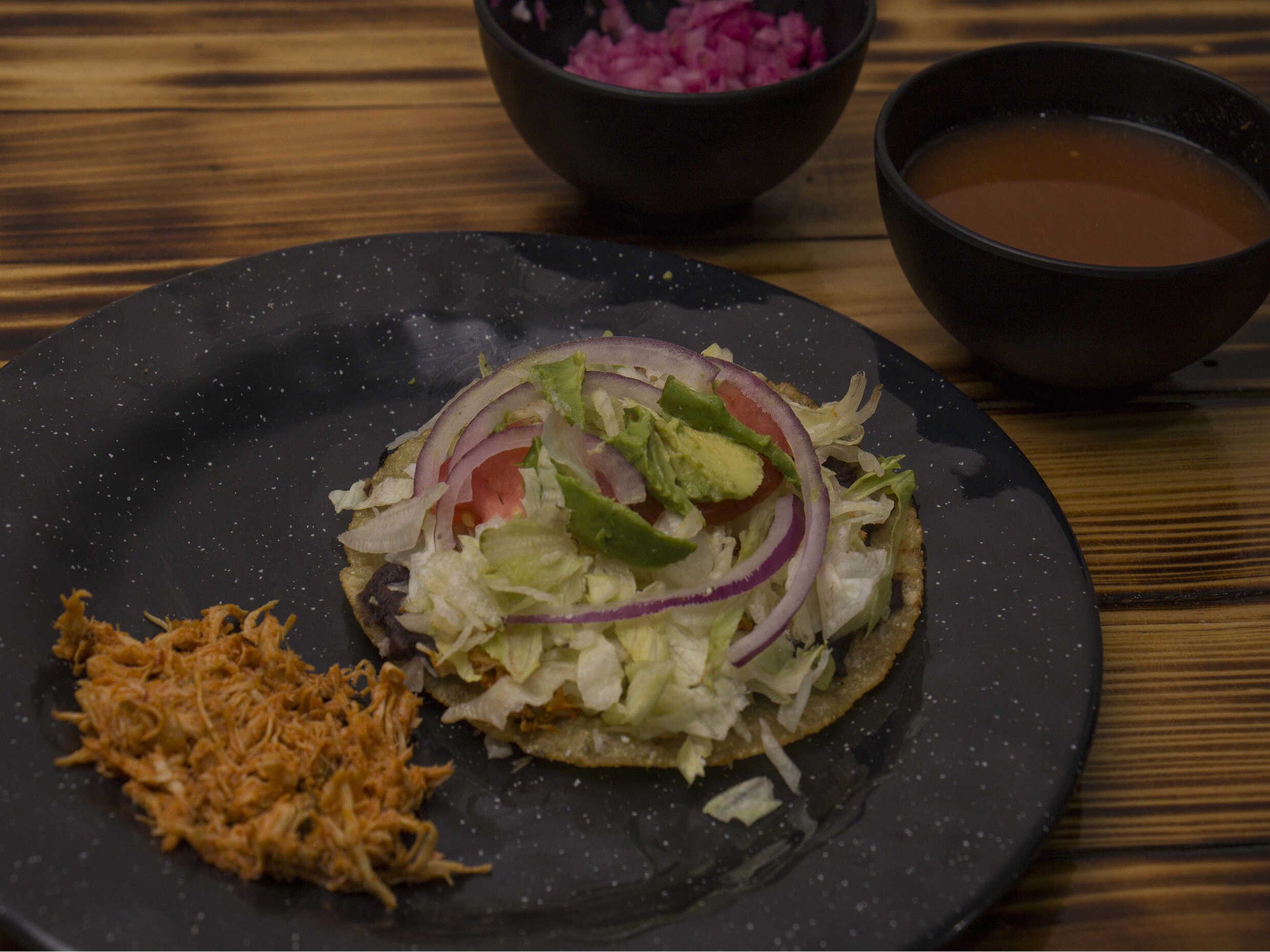Orden de 3 tostadas a elegir de pollo carne o cochinita