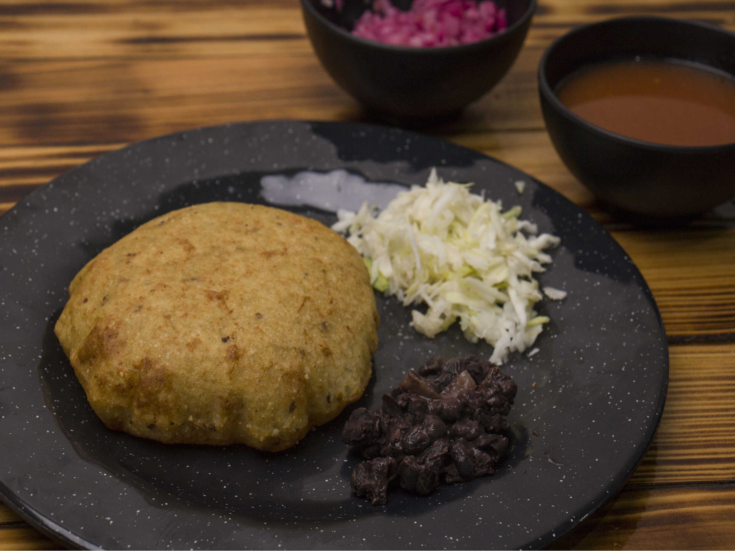 Panucho hecho a base de maíz con relleno a escoger
