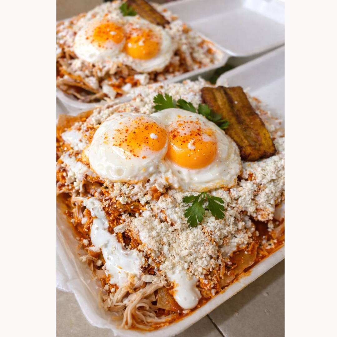 Preparados al momento con totopos crujientes bañados en salsa casera roja o verde (elige tu favorita). Servidos bien calientitos, con crema fresca, queso y cebolla, en porción generosa como debe ser.