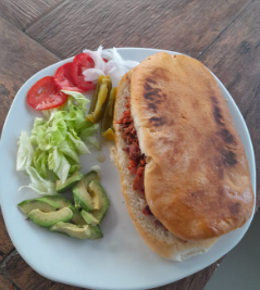 Bolillo fresco con carne.