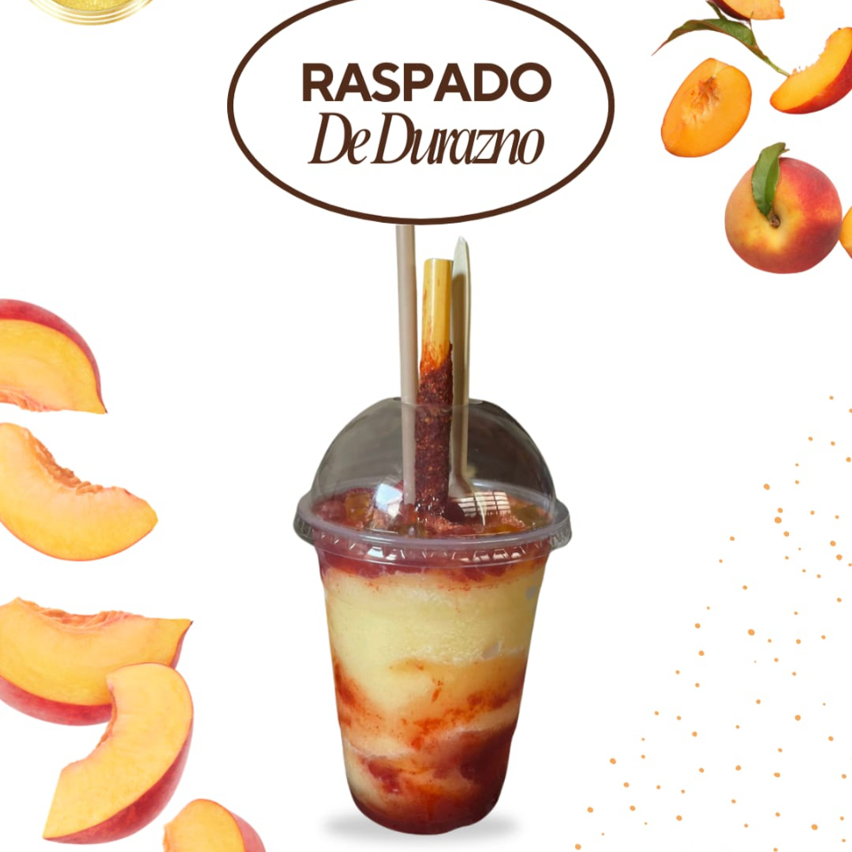 Durazno congelado, azúcar, miguelito y chamoy (incluye 2 tipo de gomitas)