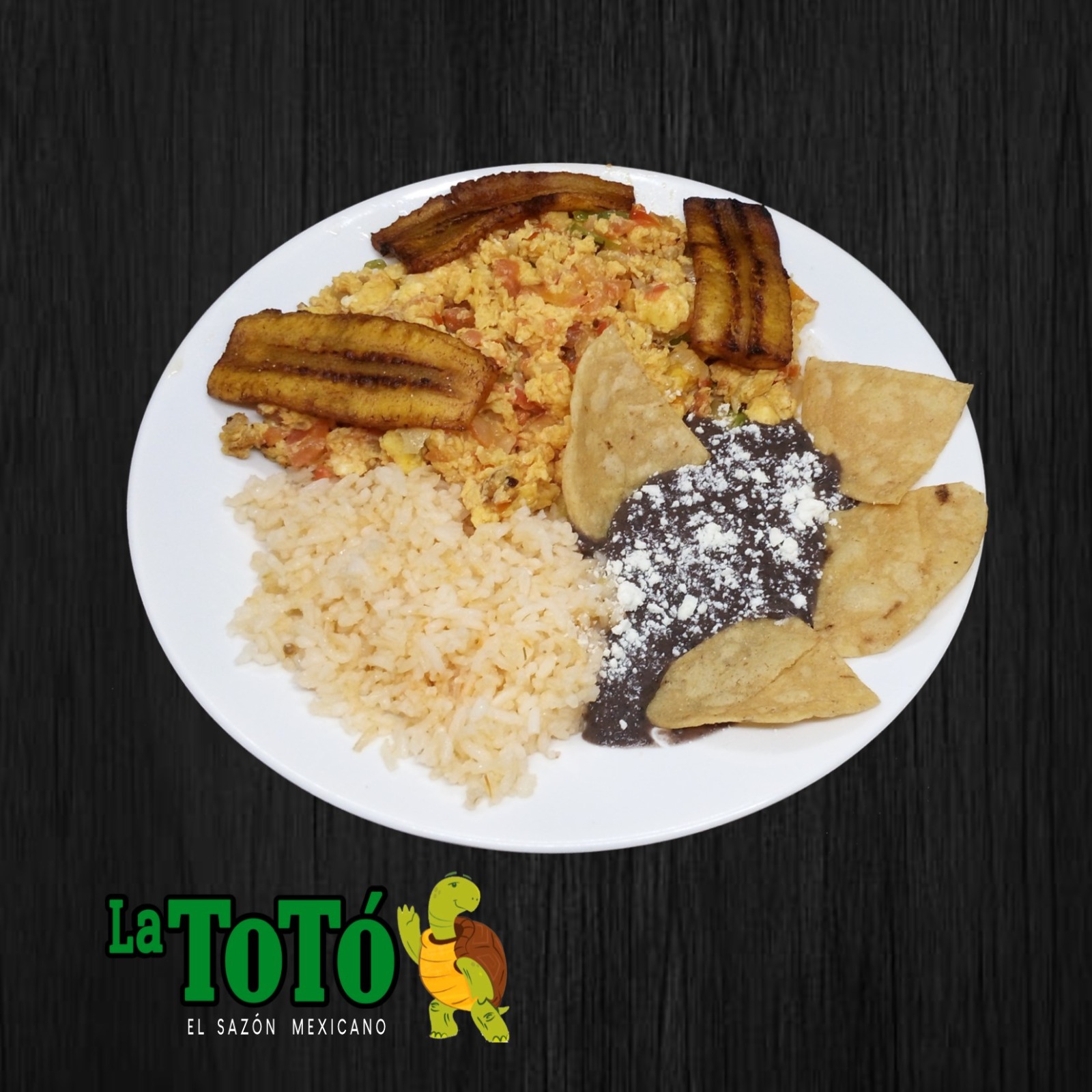 Acompañados de frijoles, plátanos fritos y totopos.