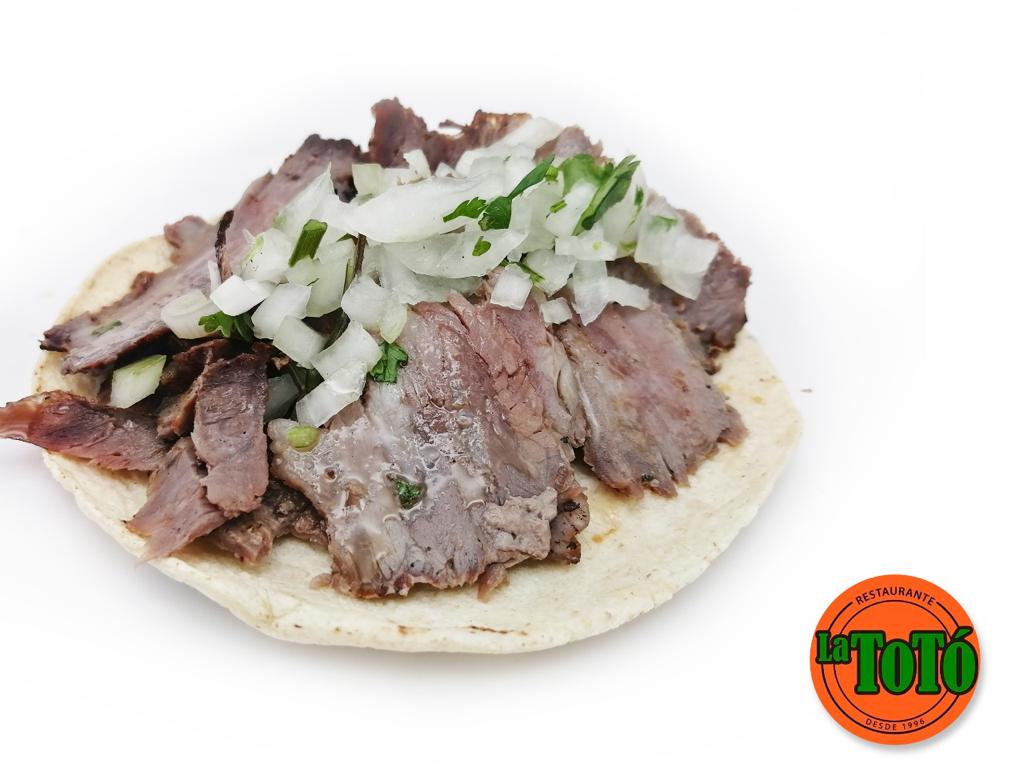 A elegir: asada, pastor, longaniza, ubre, tripa y sirloin. Acompañado de cebollita asada papita cambray salsas verdura