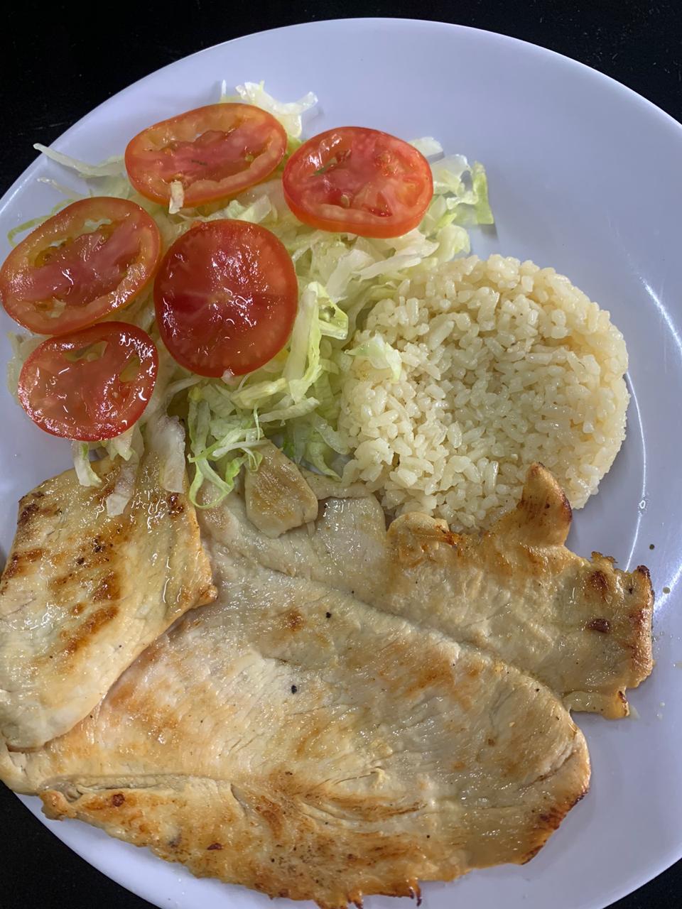 Asada o empanizada y acompañada de arroz, frijoles, ensalada y papas.