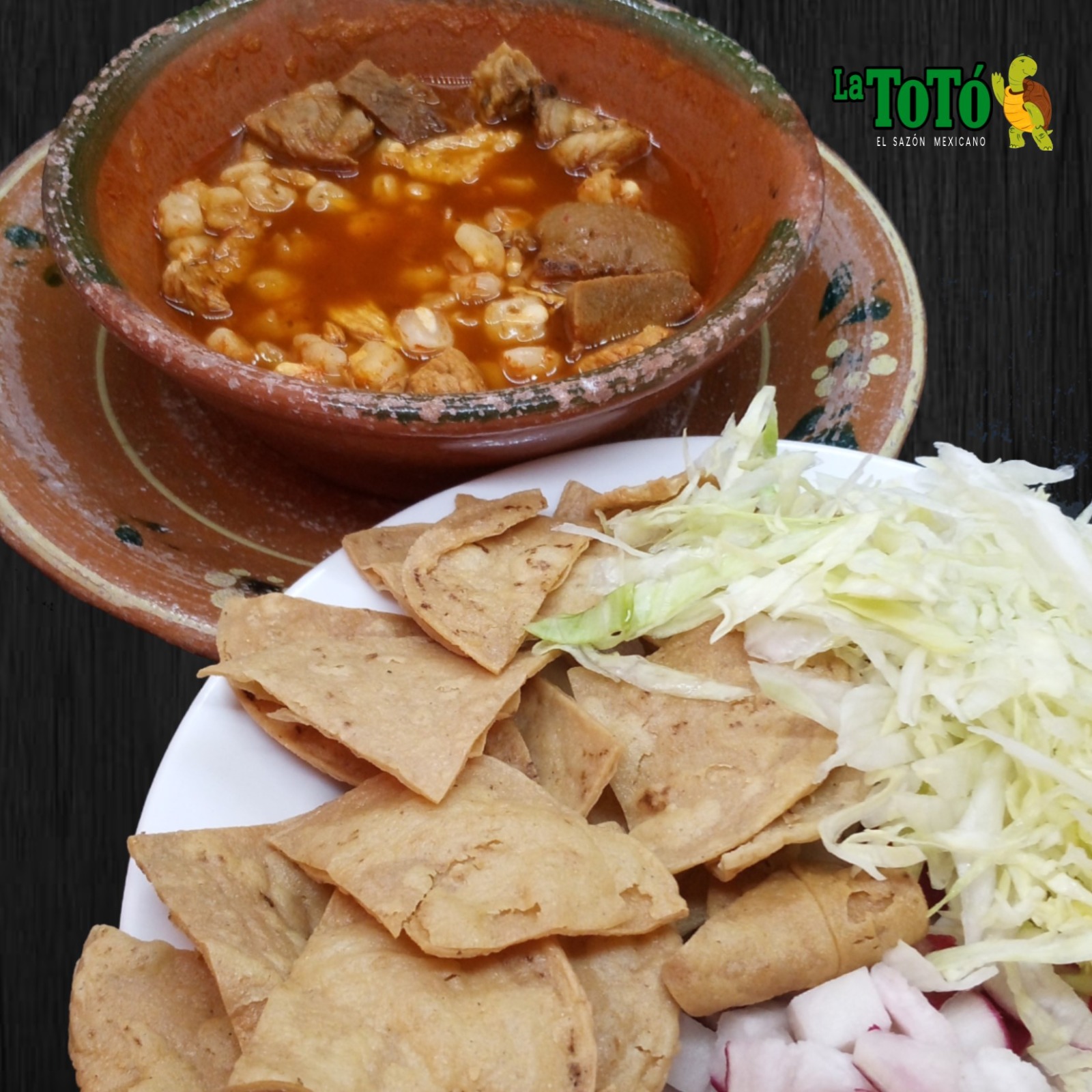 Delicioso pozole rojo. Acompañado de ensalada y totopos
