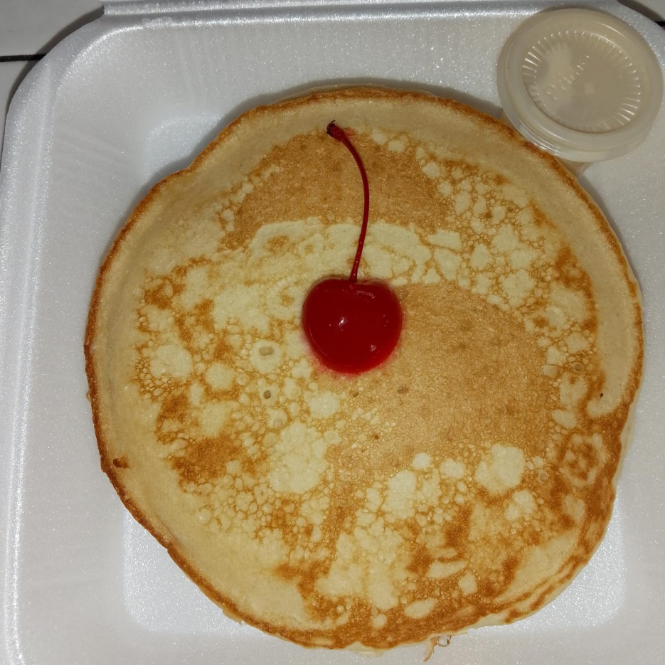 3 piezas de Hot Cake acompañado de Lechera y decorado con cereza